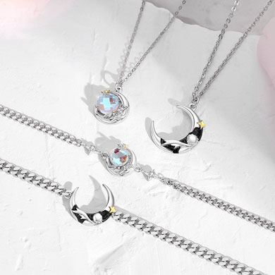 原创星月小王子与玫瑰情侣项链纯银创意设计星球锁骨链情人节礼物