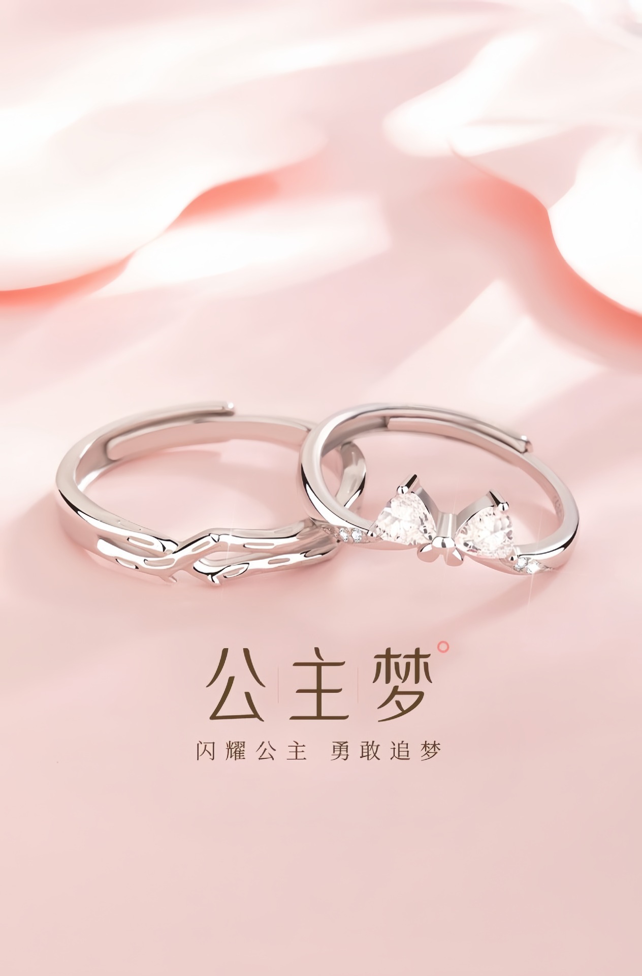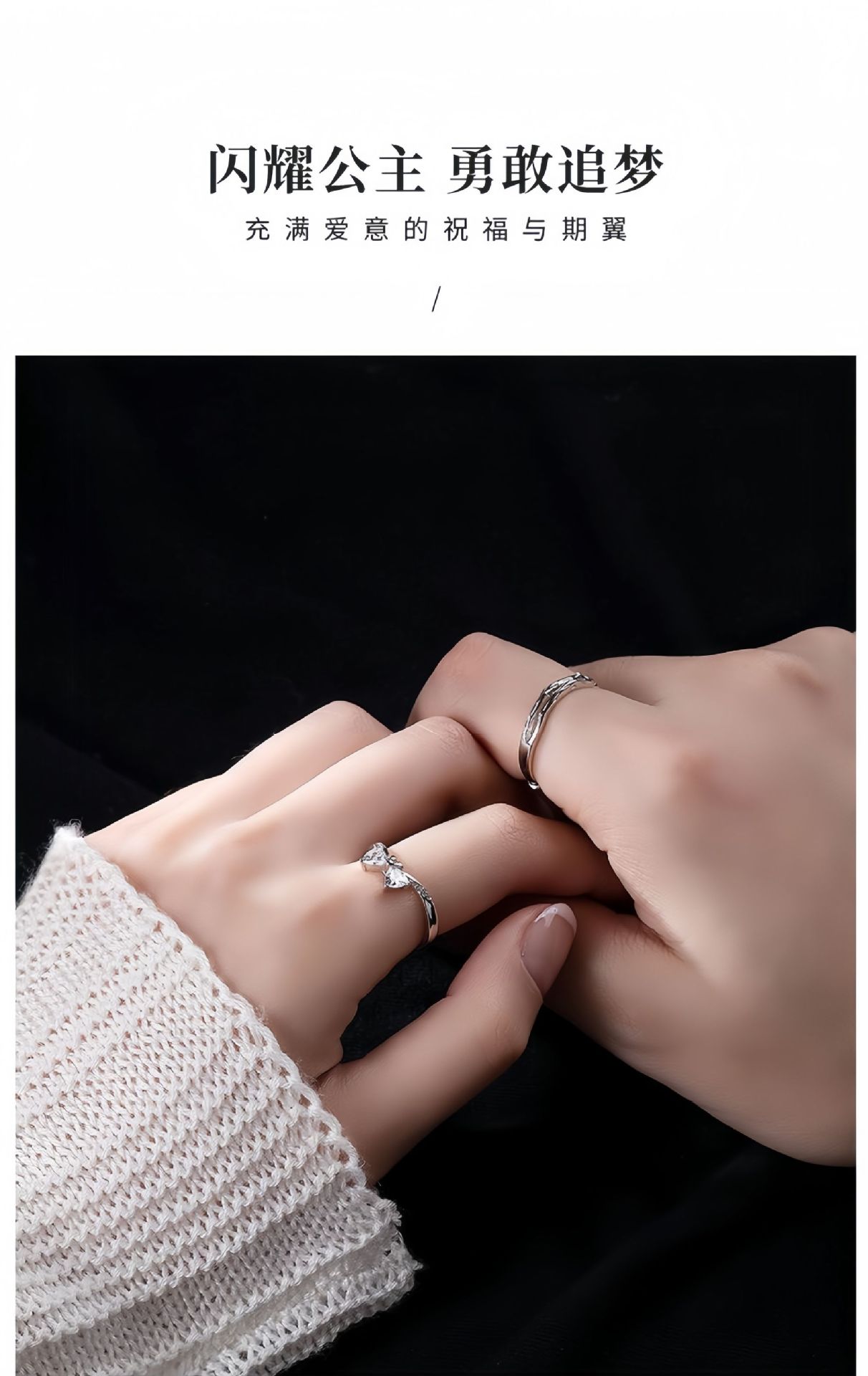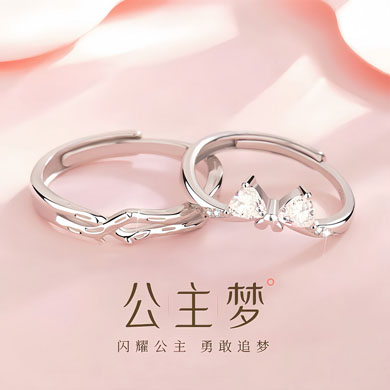 公主梦情侣对戒s925纯银一对小众高级感戒指情人节礼物送女友