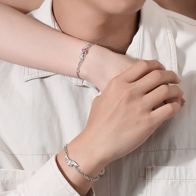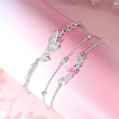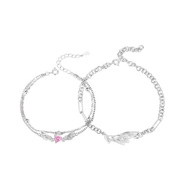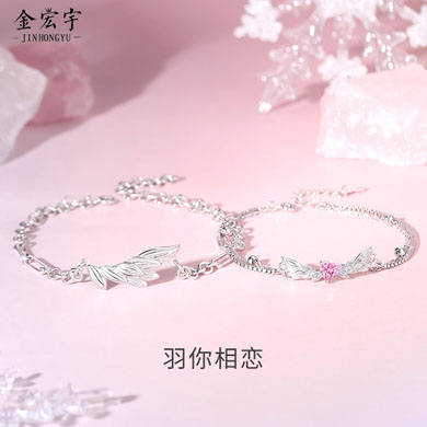 原创925纯银羽你相恋情侣手链ins小众高级感爱心羽翼手环七夕礼物