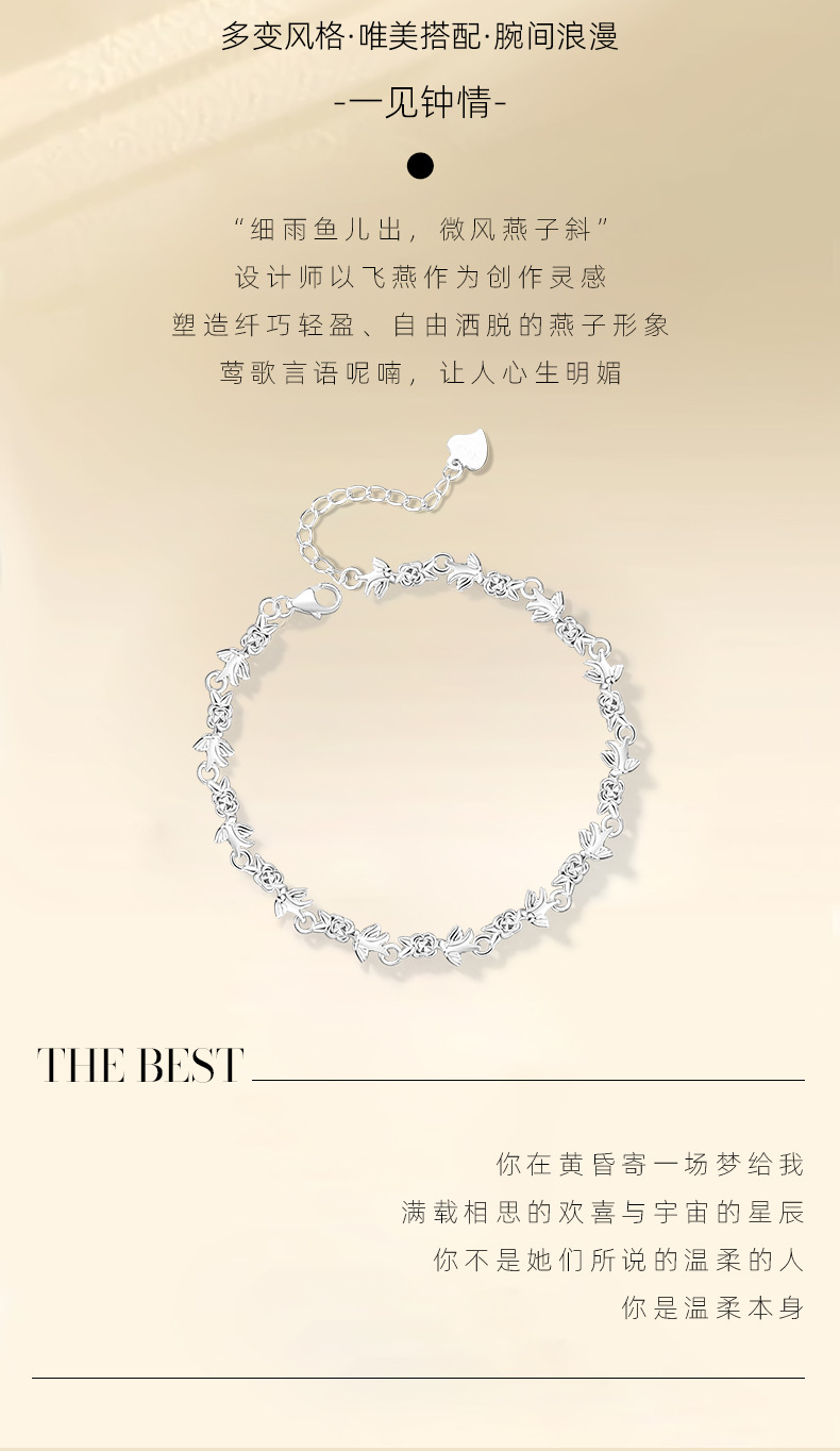 燕子足银999手链女小众设计轻奢款飞鸟手环情人节ins风小鸟手饰