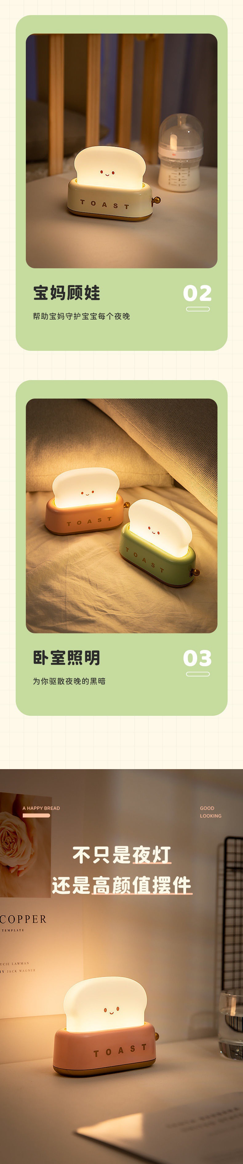 台灯创意INS风吐司面包机夜灯小众感送友闺蜜七夕情人节礼物实用