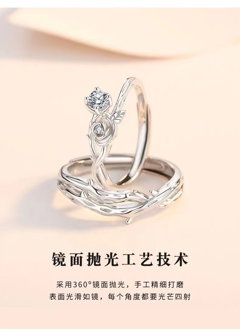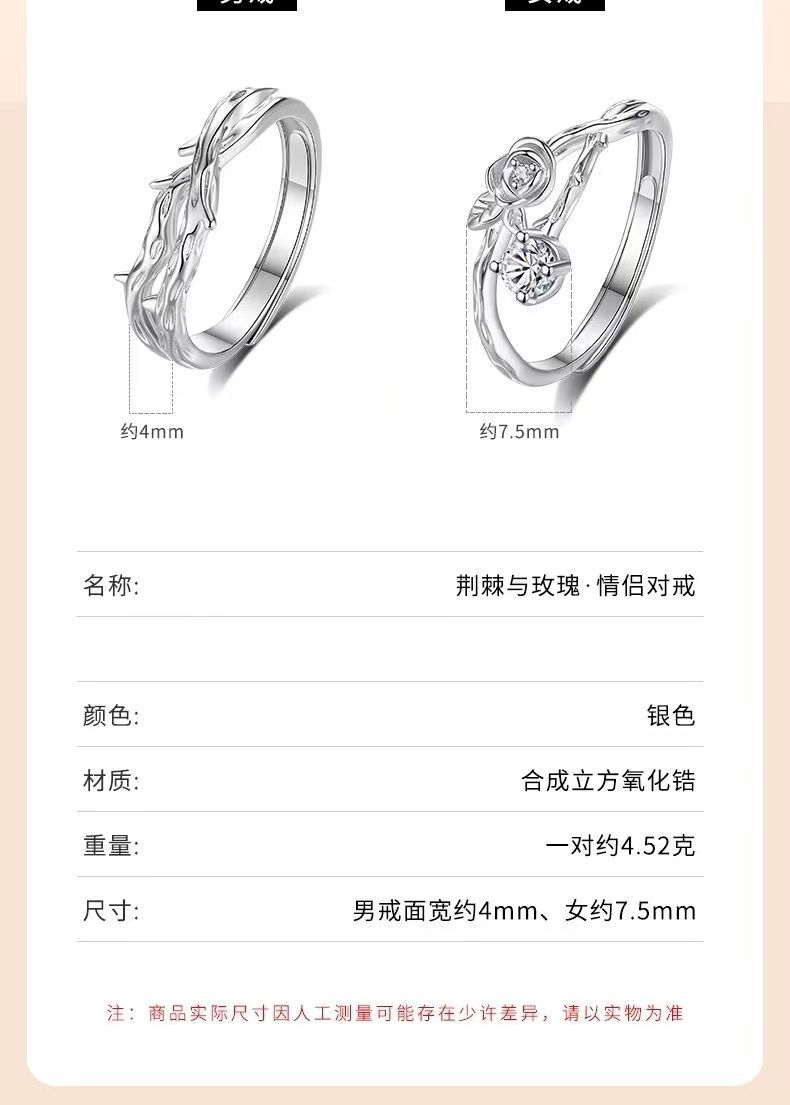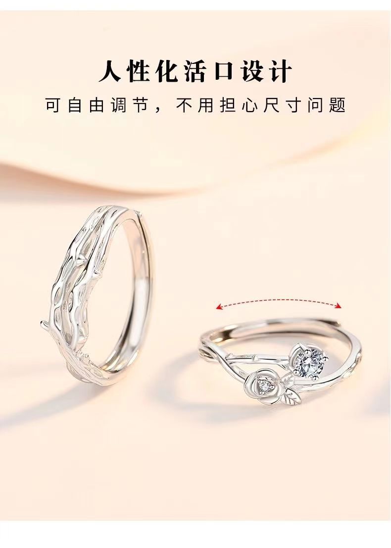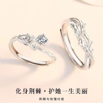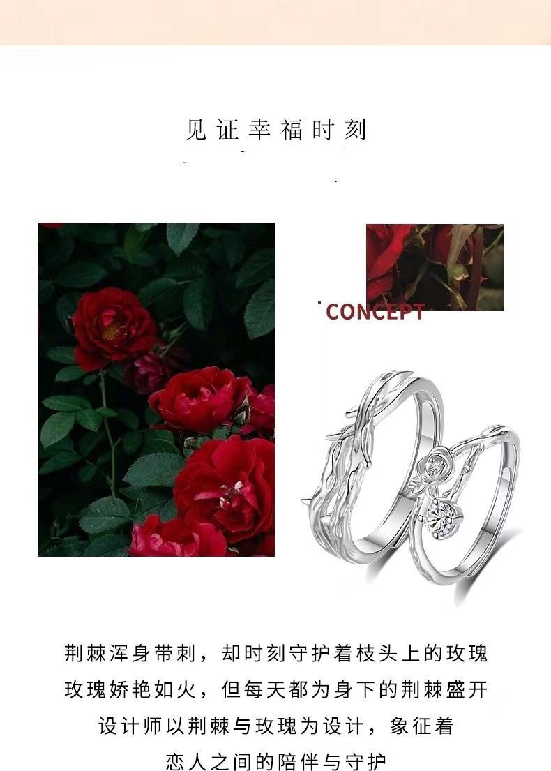荆棘与玫瑰情侣戒指925银一对男女款小众设计圣诞节礼物送女友