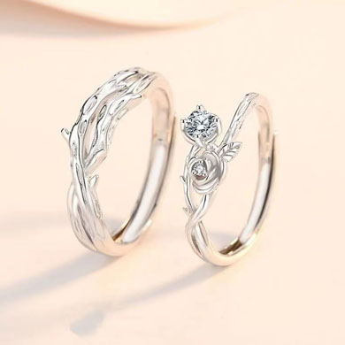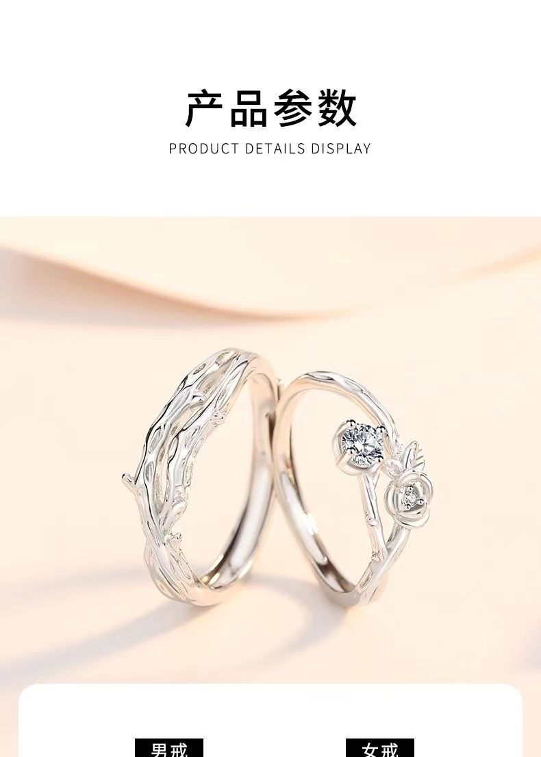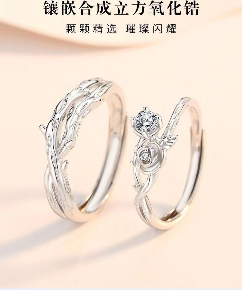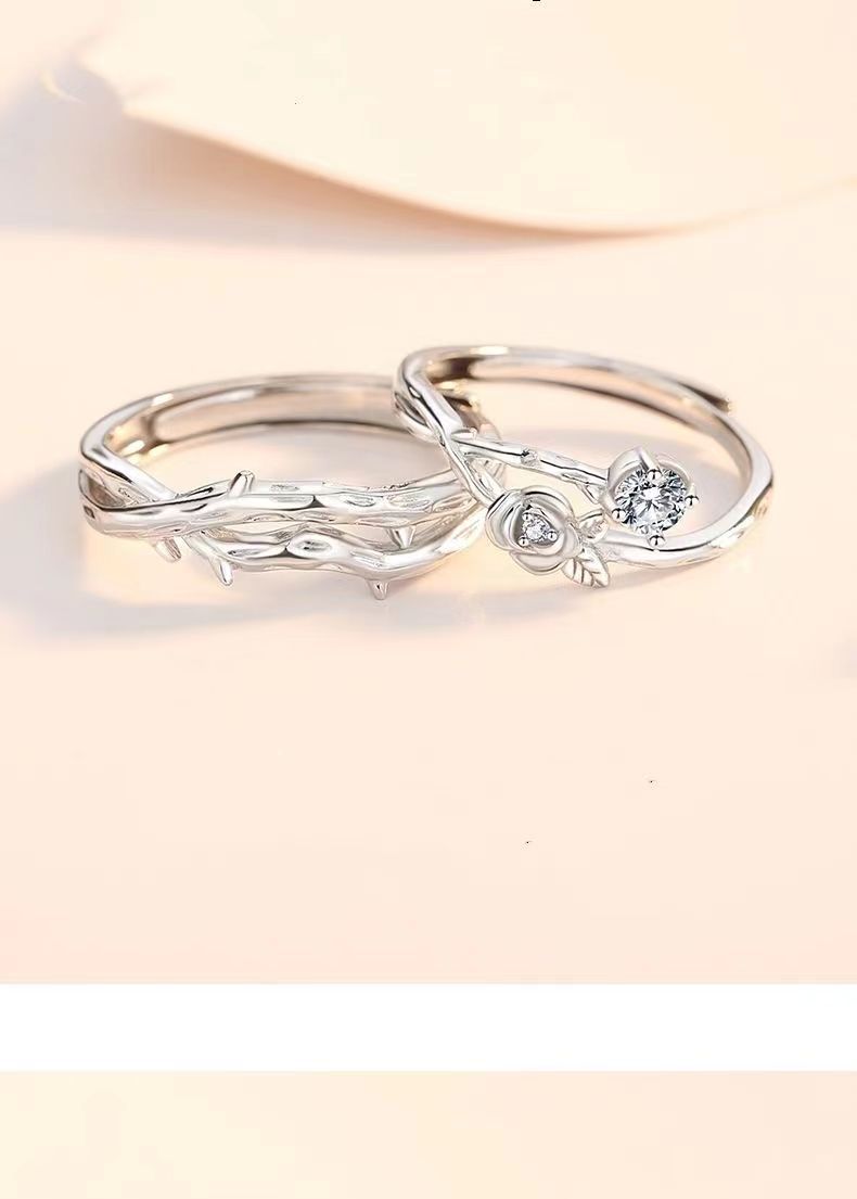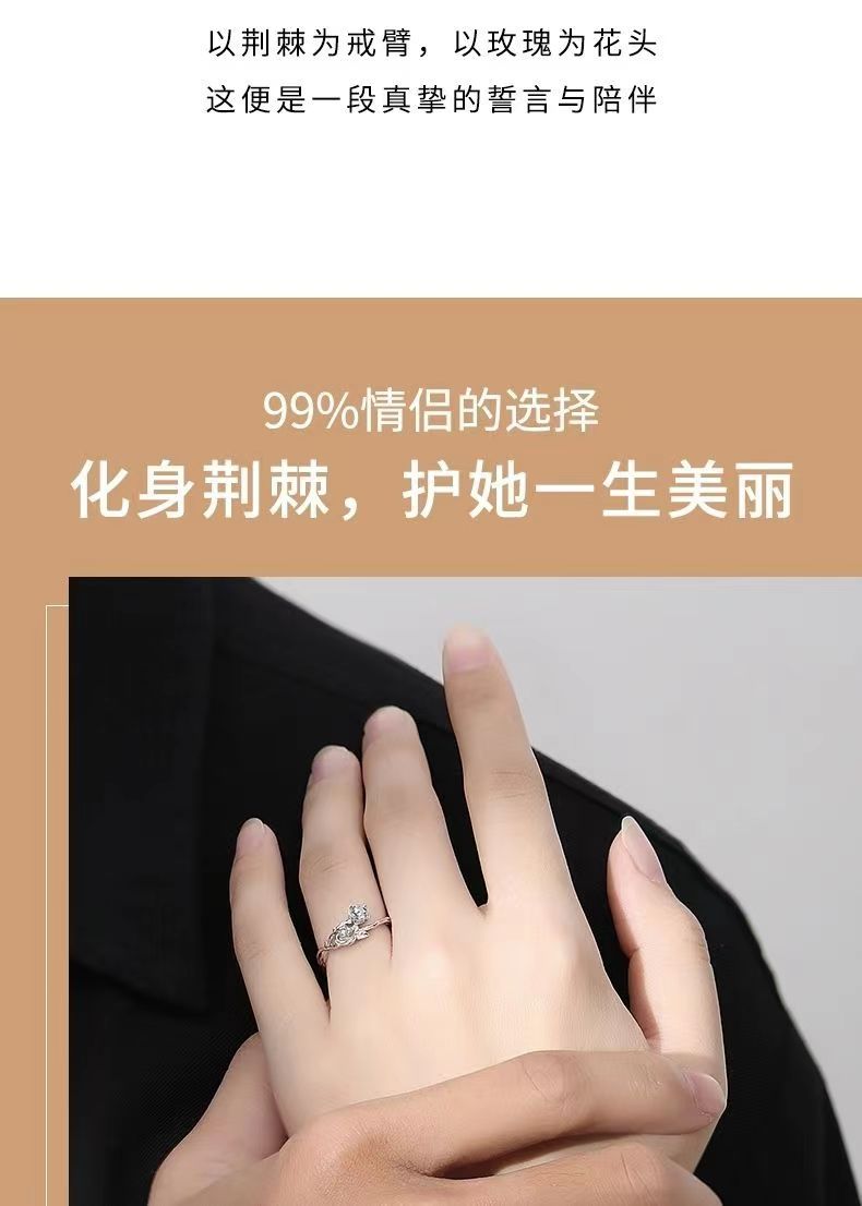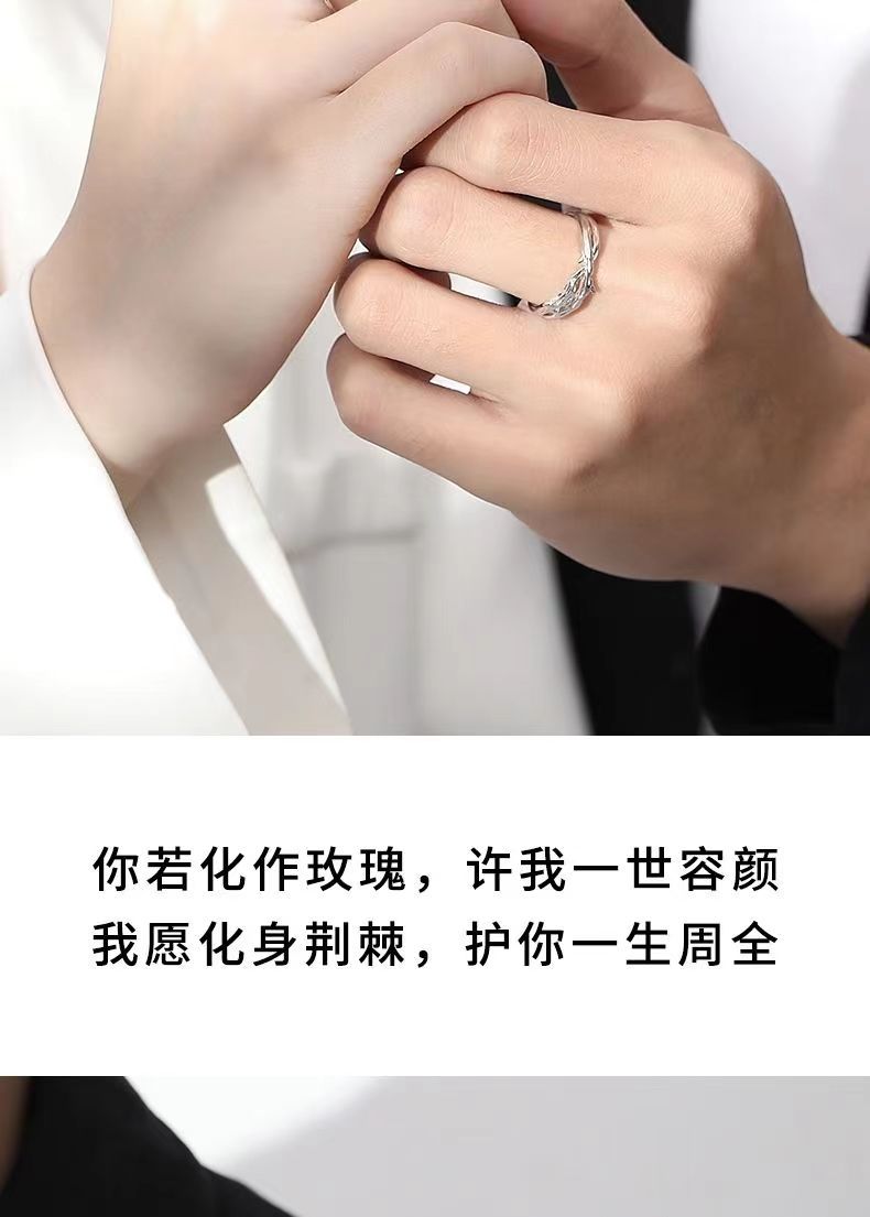 荆棘与玫瑰情侣戒指925银一对男女款小众设计圣诞节礼物送女友