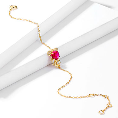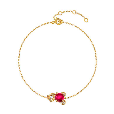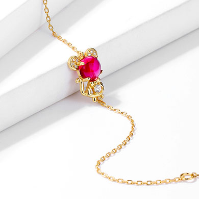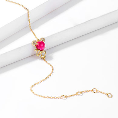 S925纯银韩版老鼠红钢玉手链女bracelet手饰