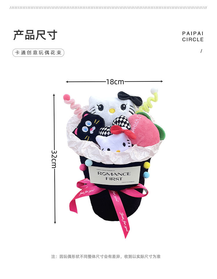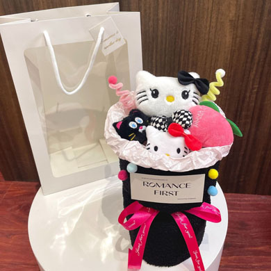 黑色玫红KT猫玩偶花束