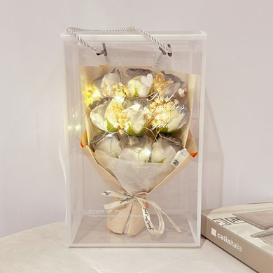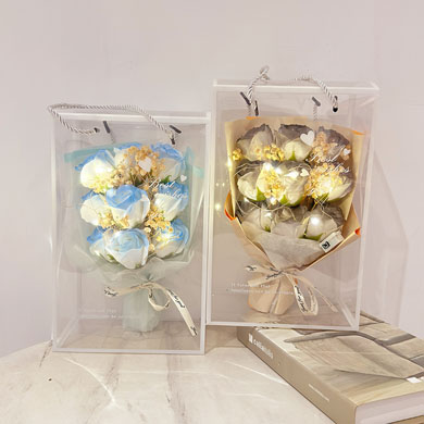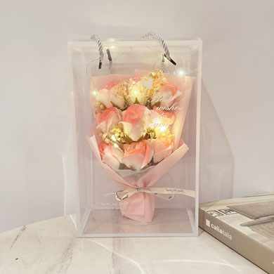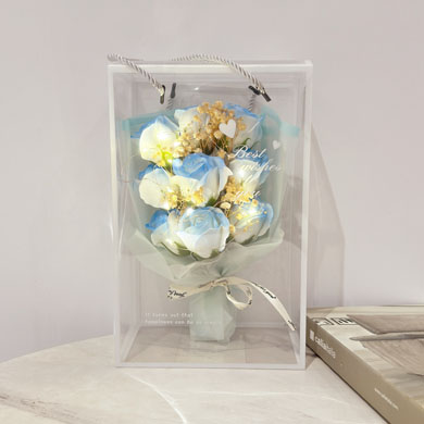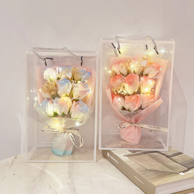 情人节礼物碎冰蓝香皂玫瑰花束带灯手提礼盒七夕节创意礼品