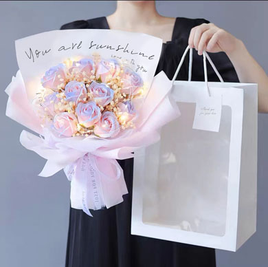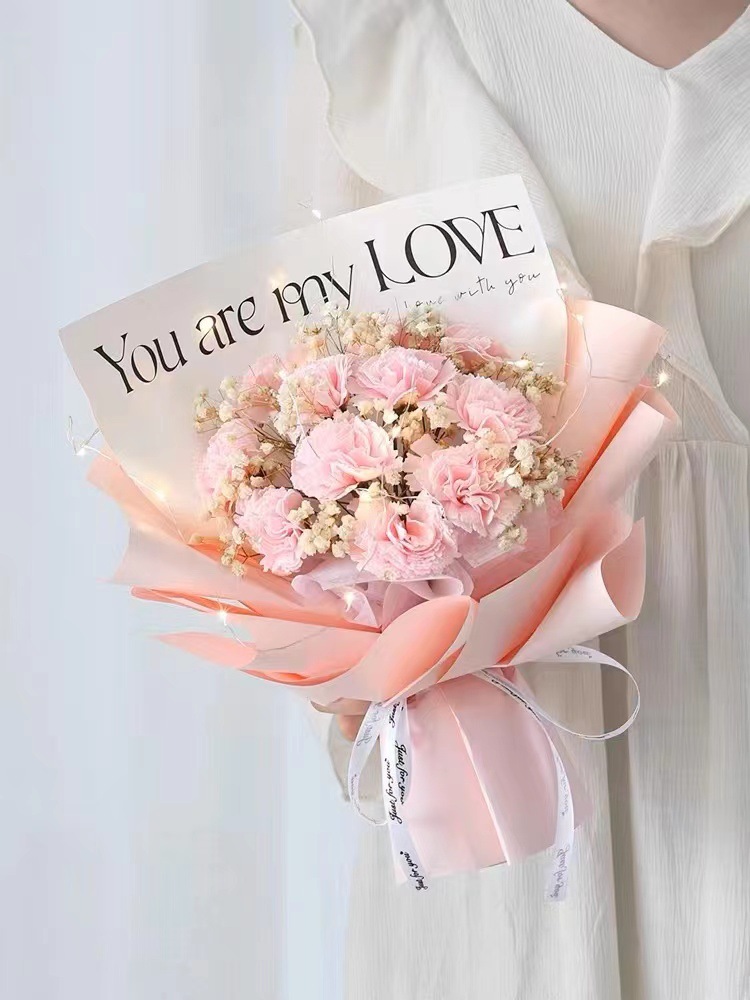 11朵粉康乃馨香皂花+满天星