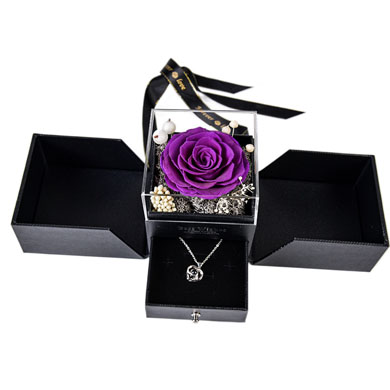 永生花双开门首饰盒一朵宝蓝色花+配材