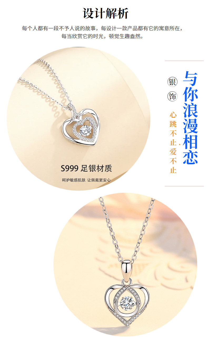 S999纯银心上人爱心项链女 轻奢小众情人节礼物送女友