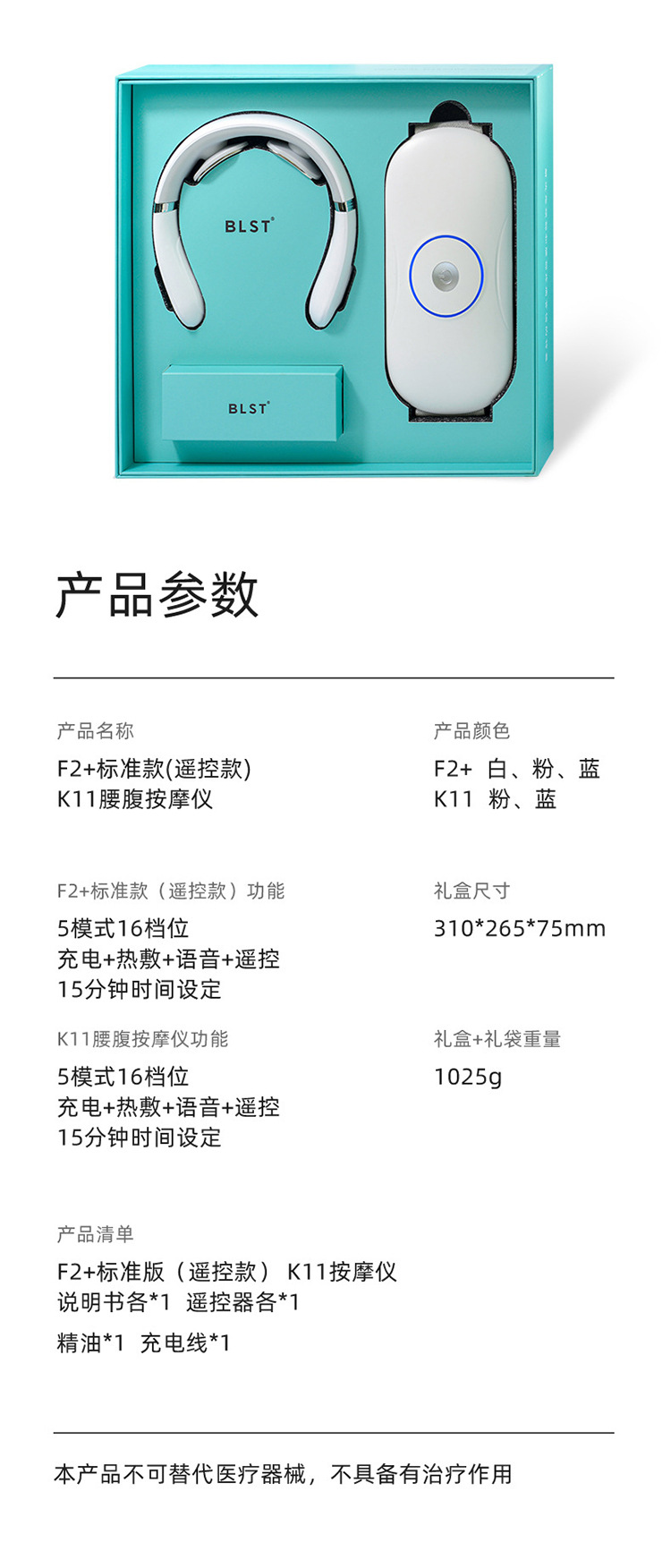 腰腹按摩仪+肩颈仪健康礼盒套装(K11白色+F2蓝色)