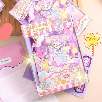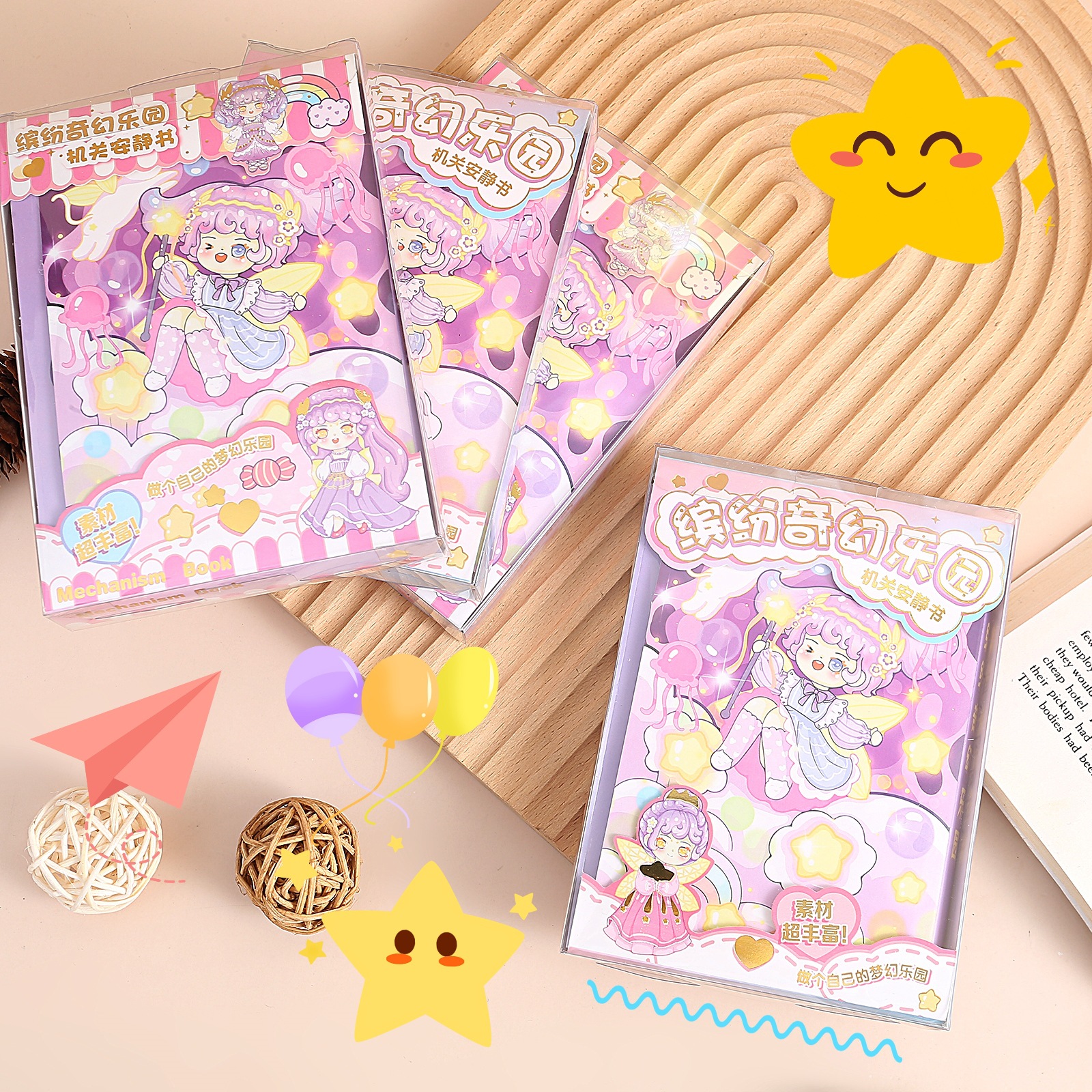现货PVC盒装卡通安静书机关书换装素材本儿童手工DIY解压小玩具