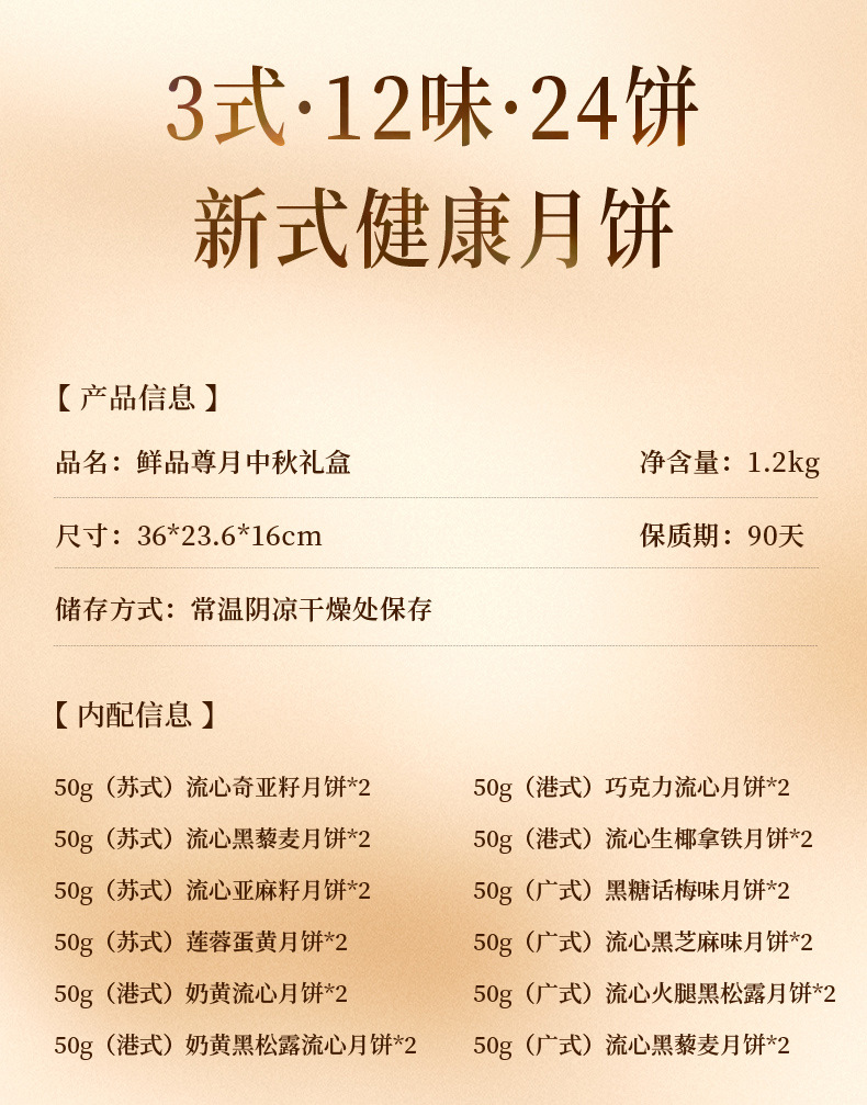 鲜品屋 1.2kg鲜品尊月 中秋节月饼礼盒高档新式
