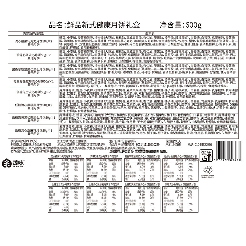 鲜品屋鲜品新式健康中秋月饼礼盒600g多种口味送礼糕点