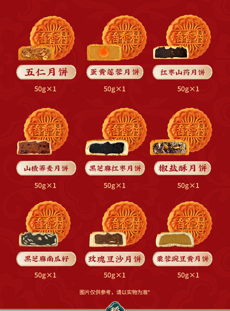 稻香村高档月饼礼盒装中秋五仁月饼蛋黄莲蓉红枣山药送礼
