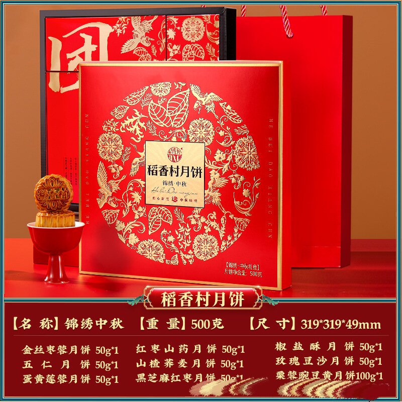 稻香村月饼礼盒锦绣中秋500g蛋黄莲蓉黑芝麻传统五仁月饼
