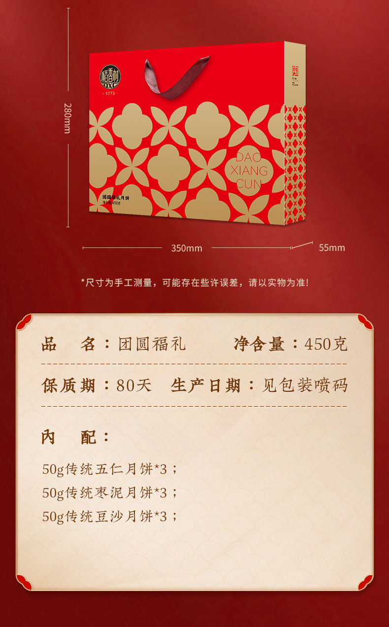 稻香村 团圆福礼450g传统月饼 中秋月饼礼盒