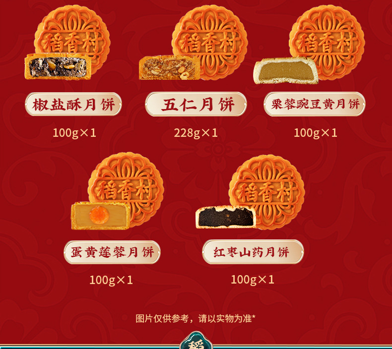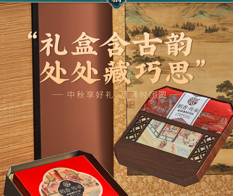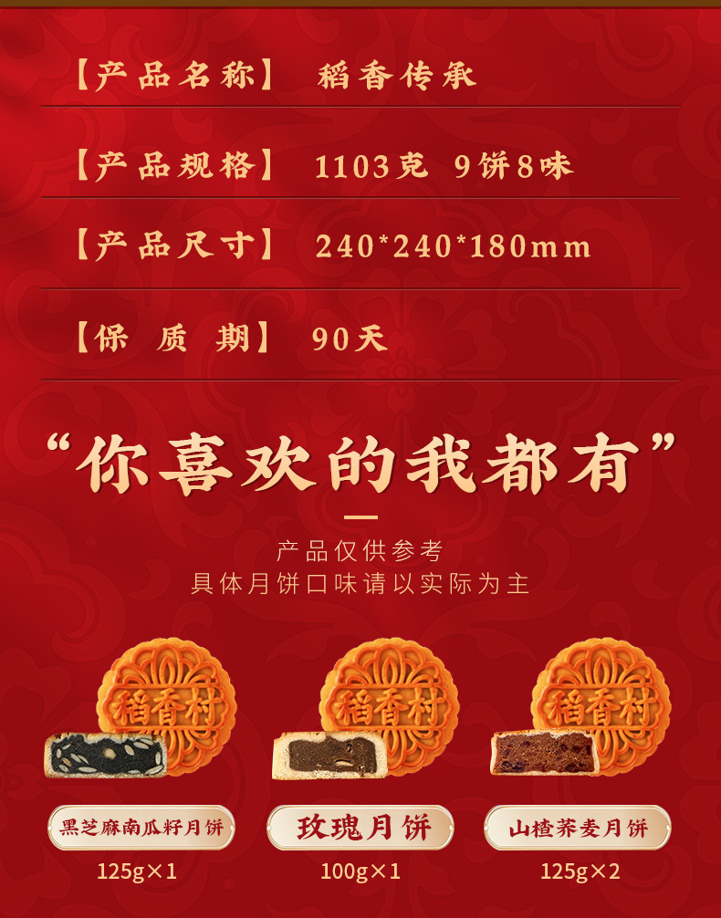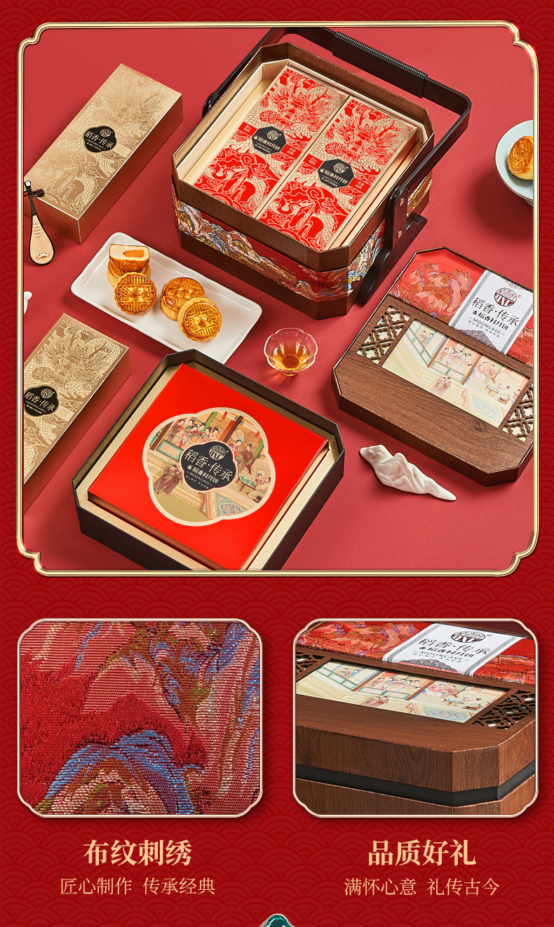 稻香村月饼礼盒稻香传承1100g广式蛋黄莲蓉五仁手提篮中秋送礼品