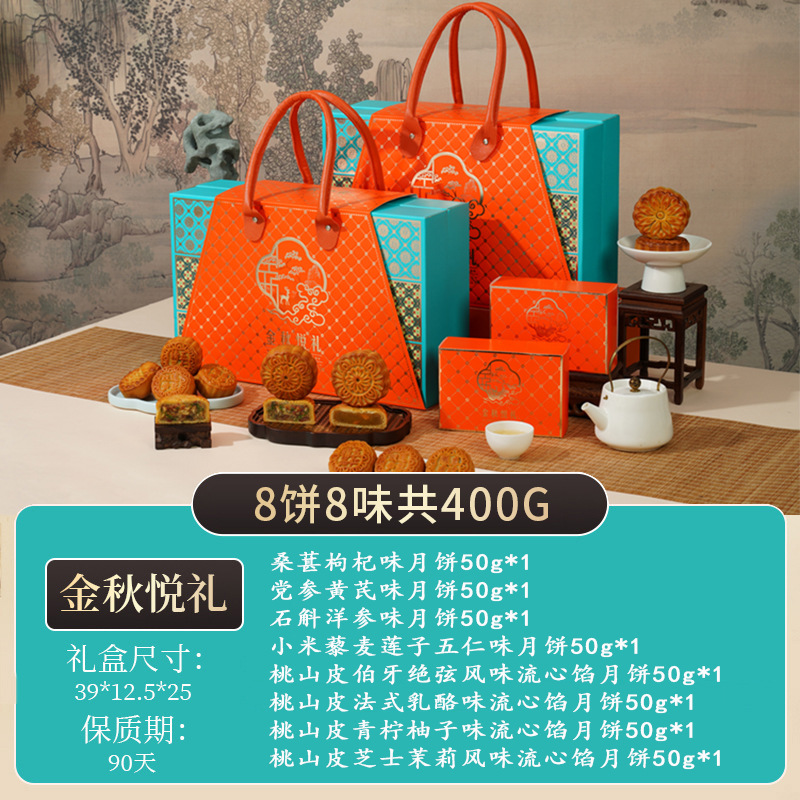 月饼精致礼盒装奶黄流心冰皮五仁月饼广式