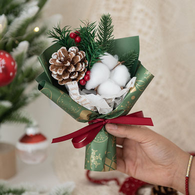 圣诞礼物圣诞花束礼盒DIY搭配创意礼物棉花松果送女朋友麋鹿圣诞
