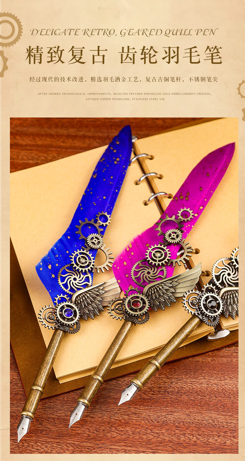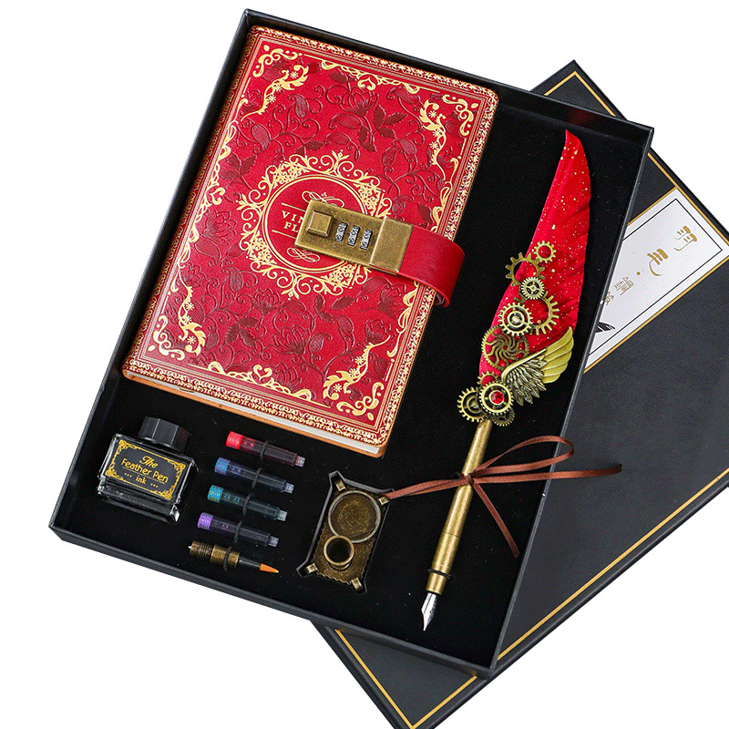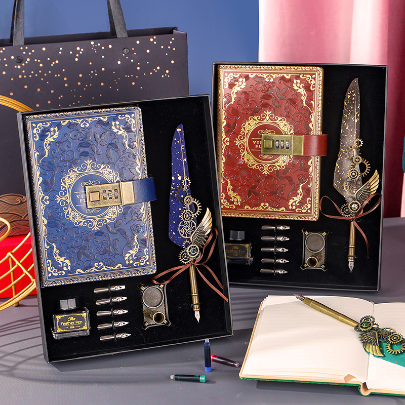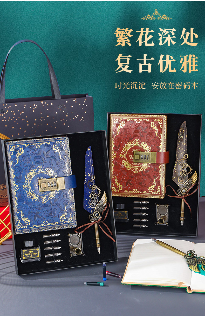 欧式经典笔记本羽毛蘸水钢笔经礼盒套装