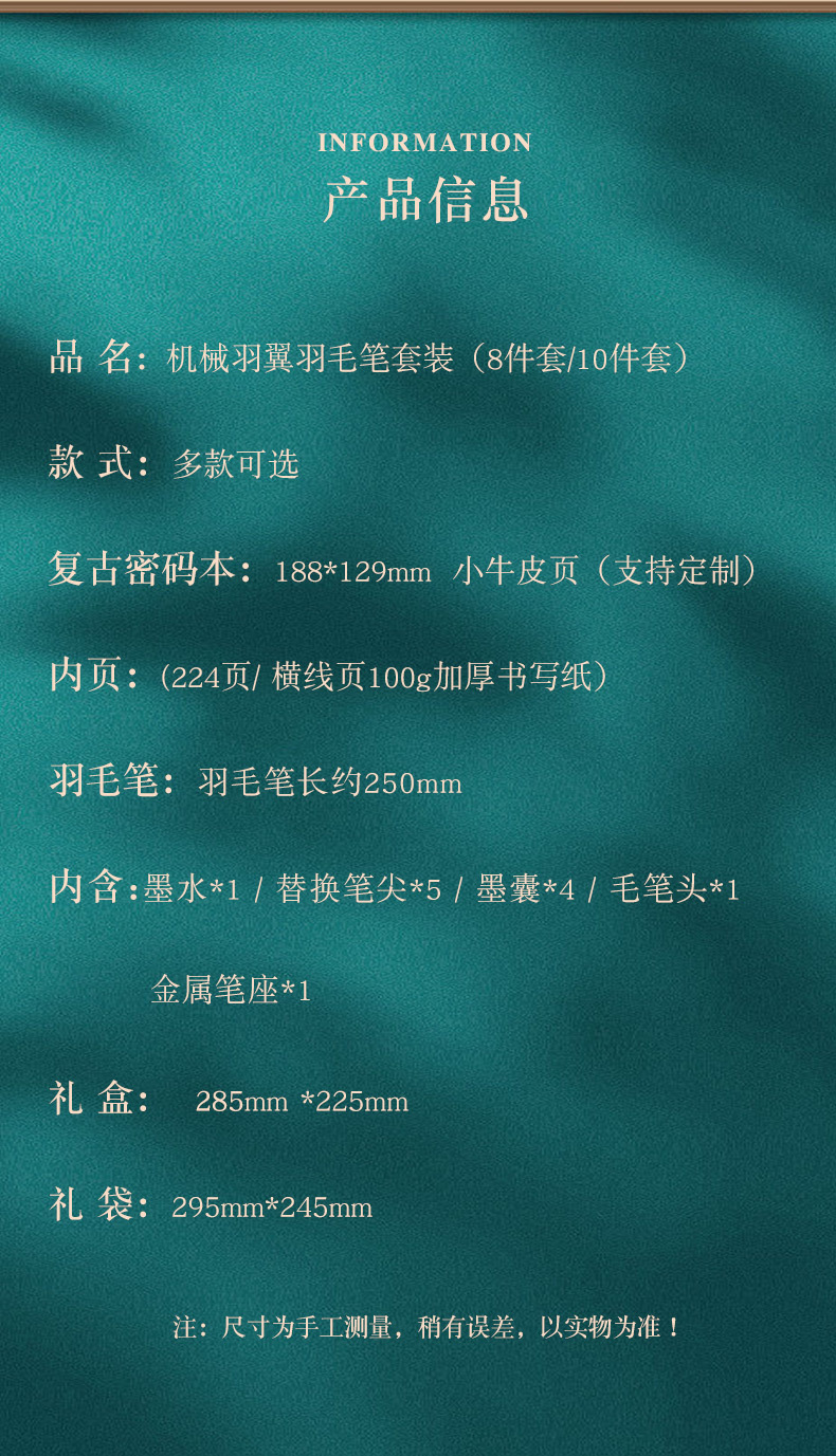 (墨囊钢毛一体翅膀)密码本9件套