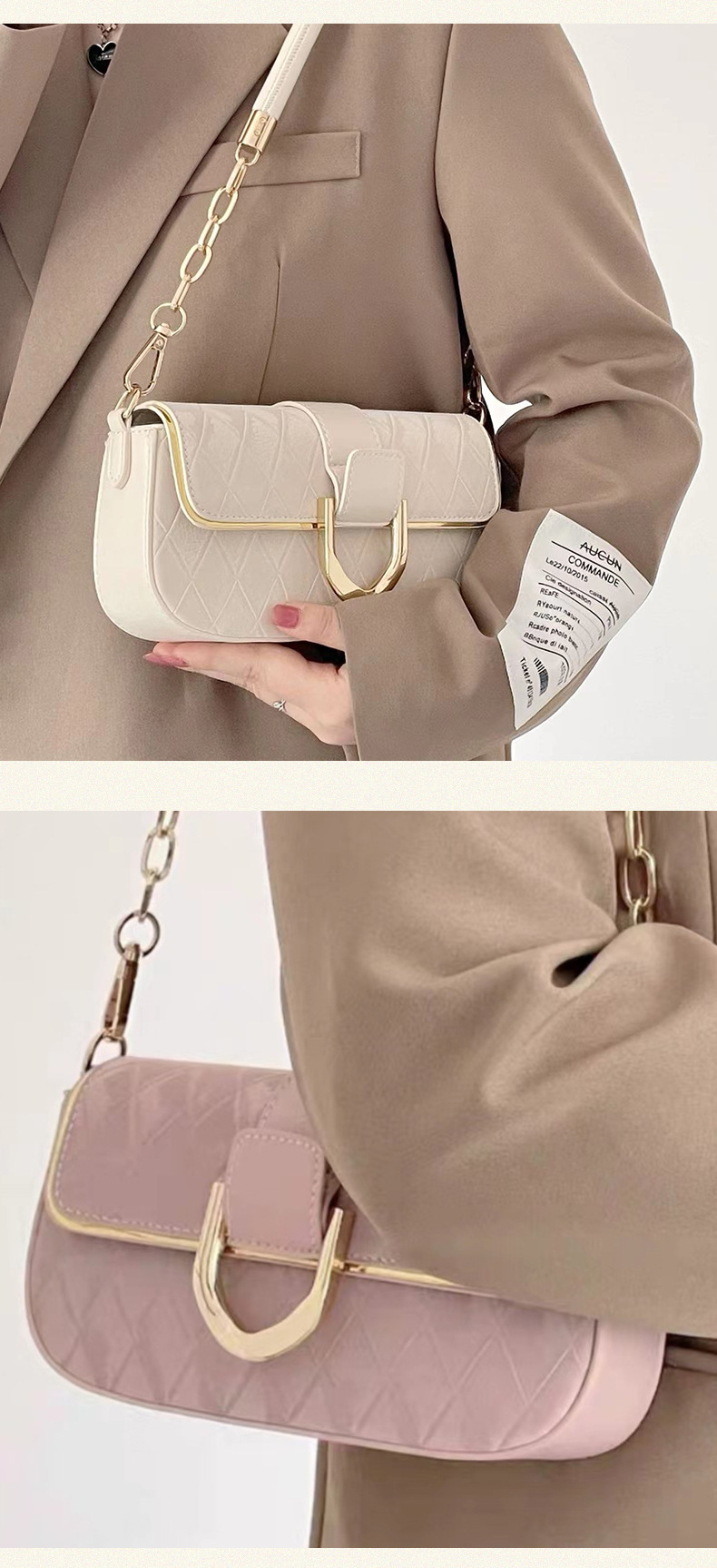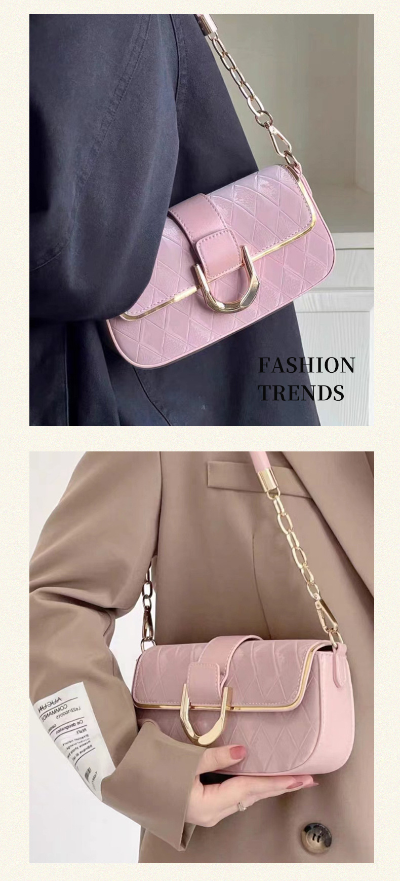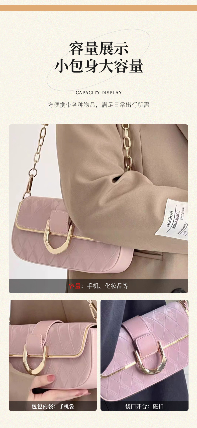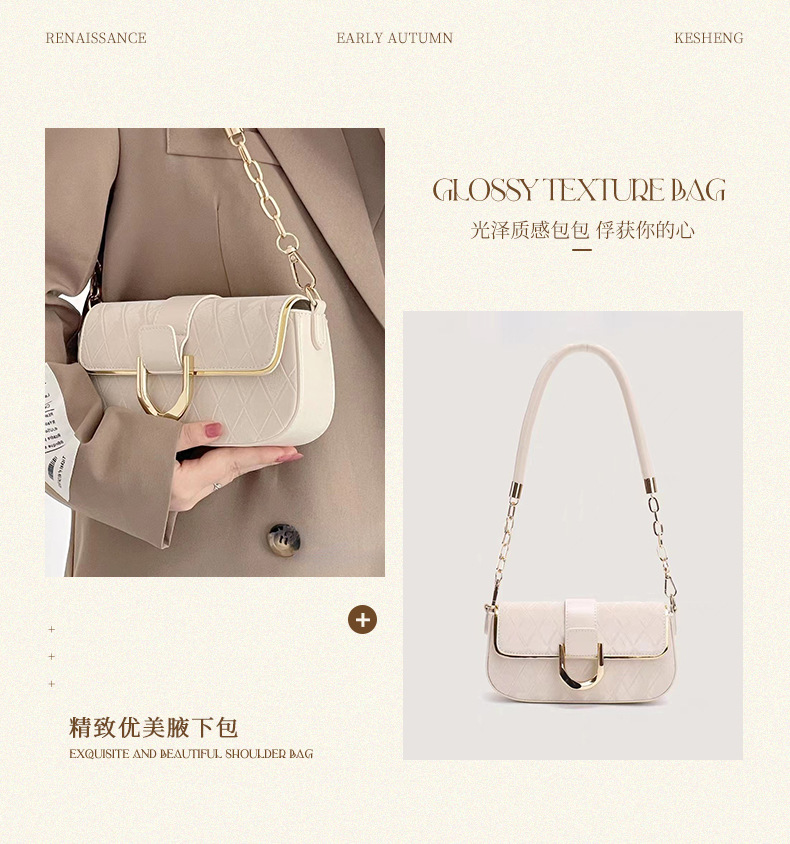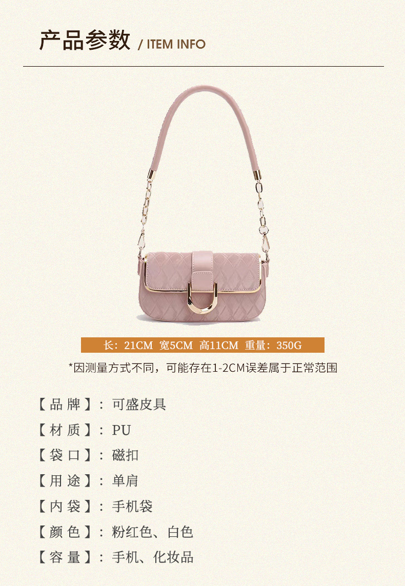菱格纹腋下包洋气百搭硬挺单肩包链条包小众气质小方包