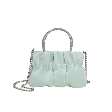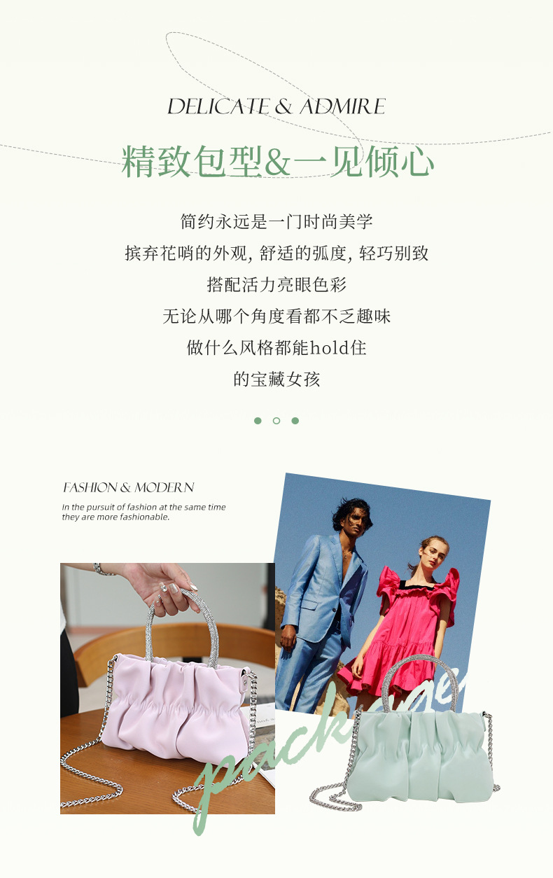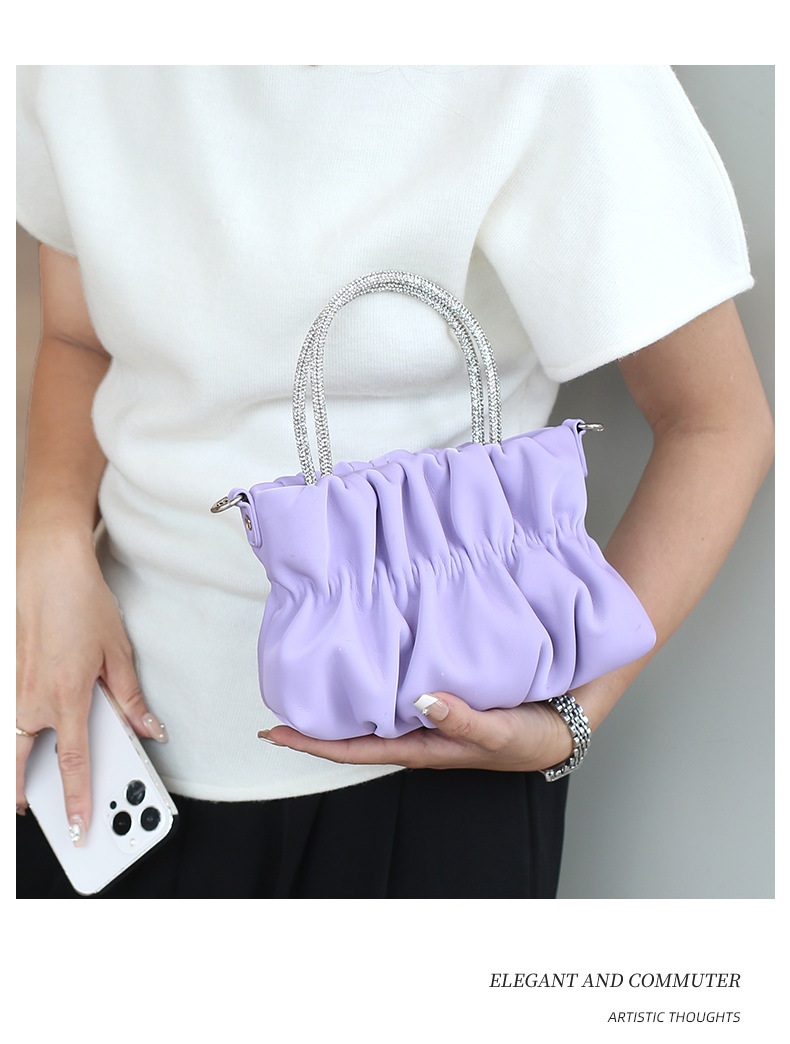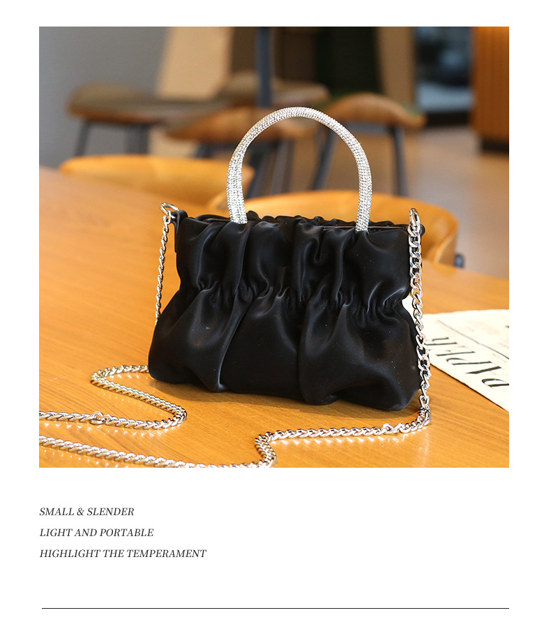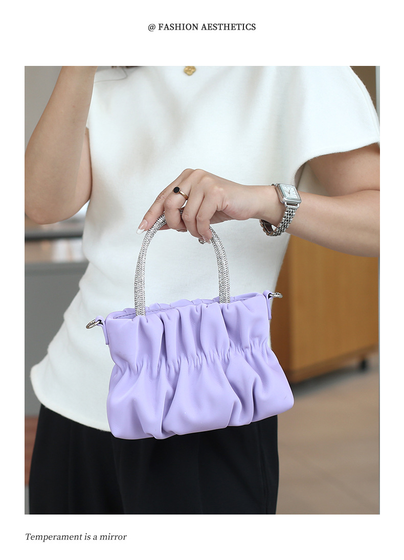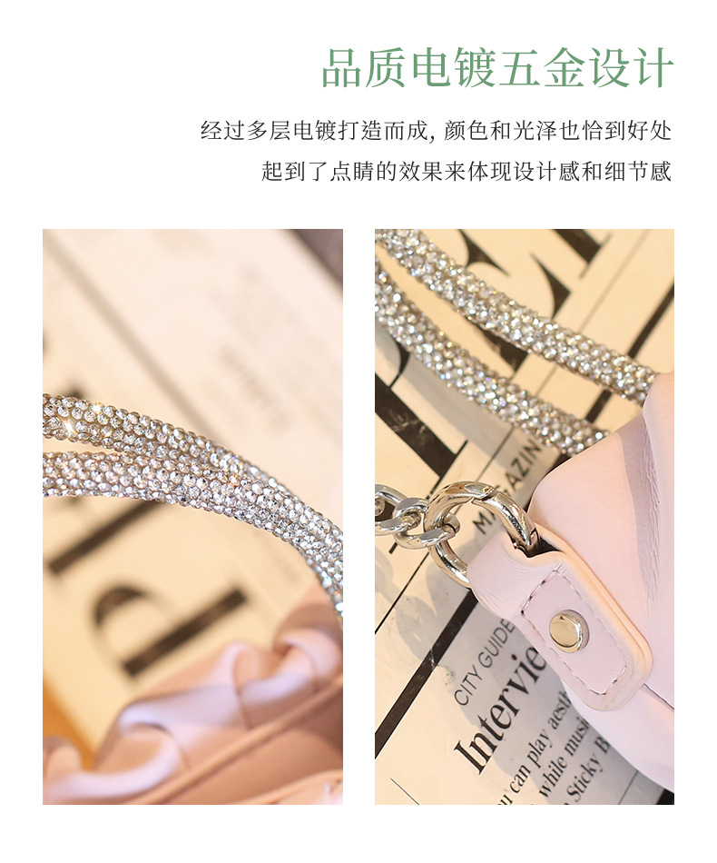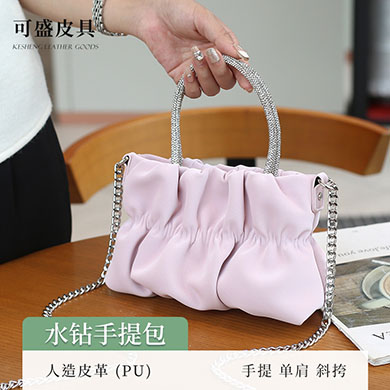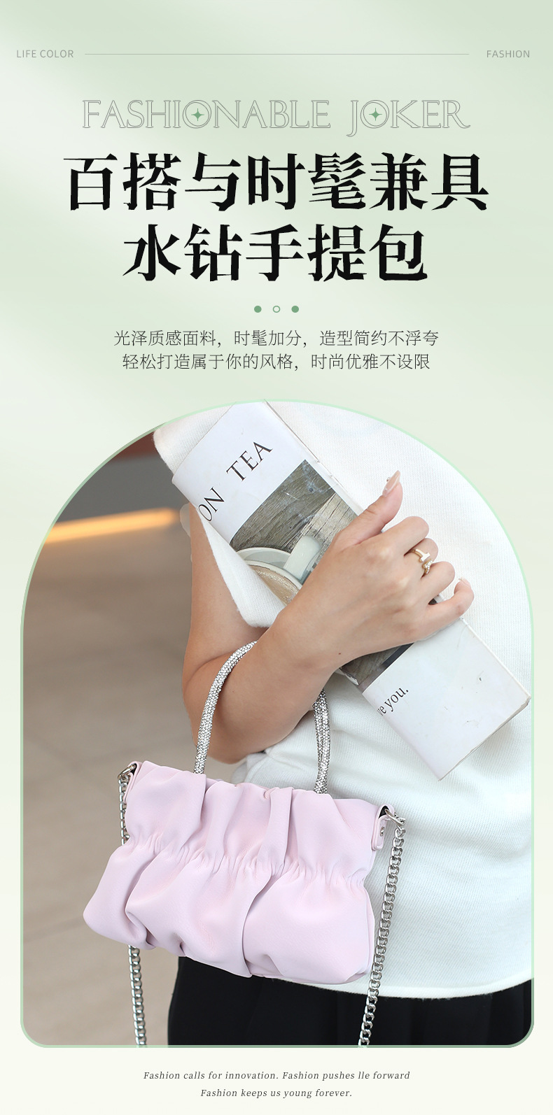 新款马卡龙色潮流可爱水钻手提包高级褶皱斜挎包链条包