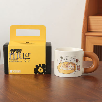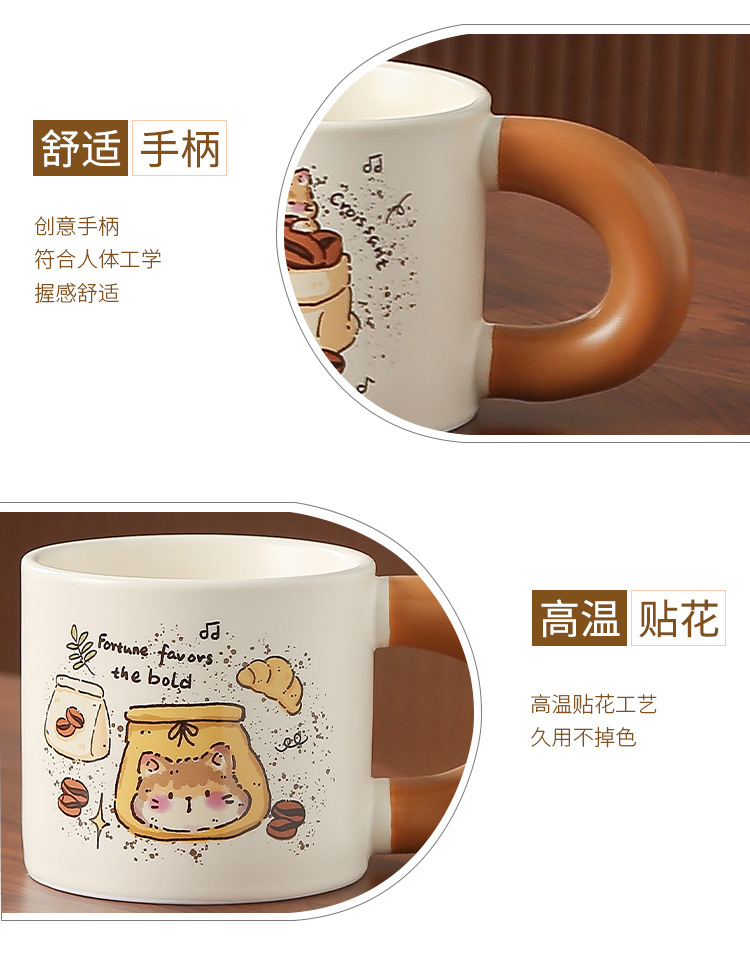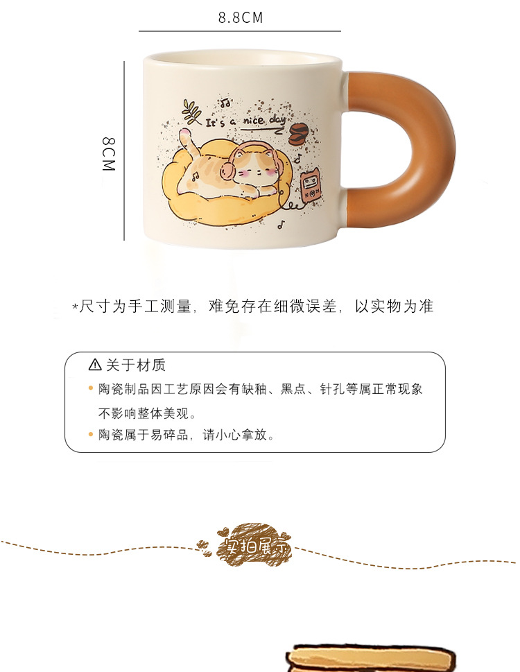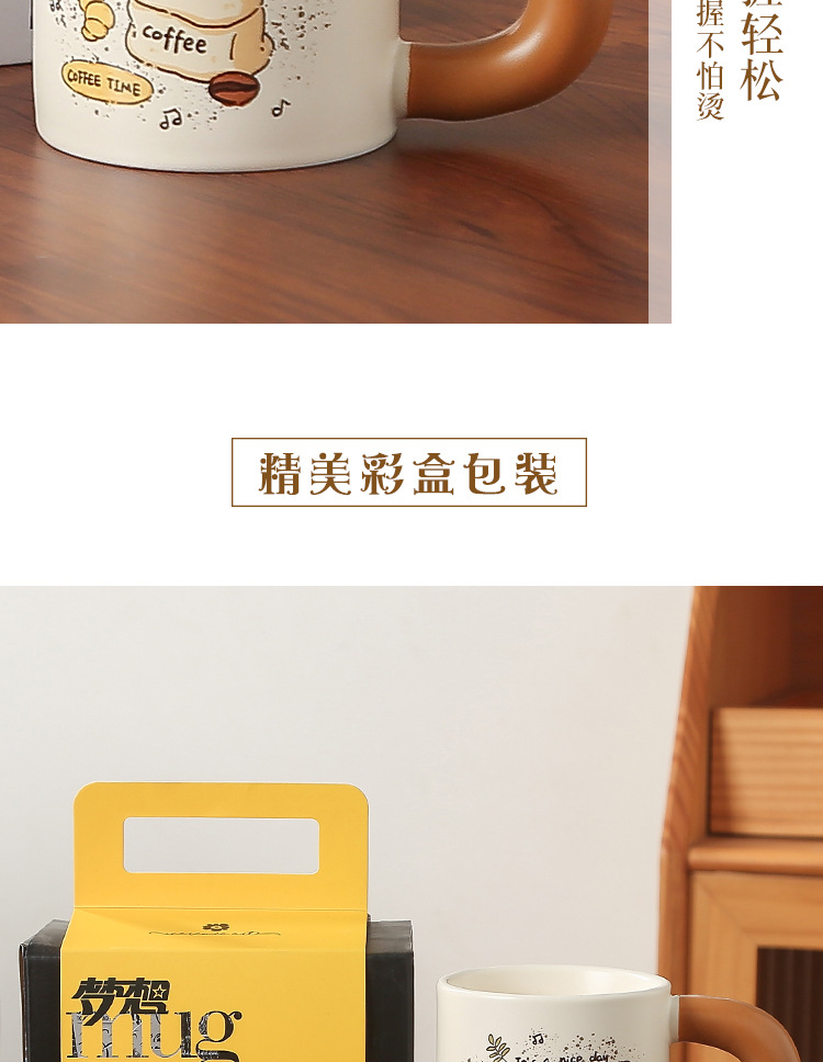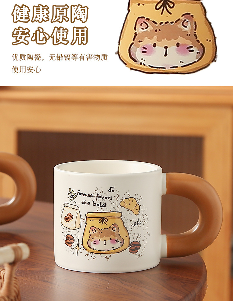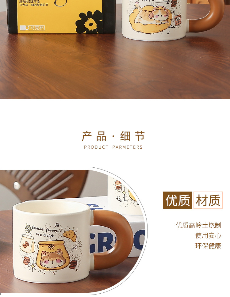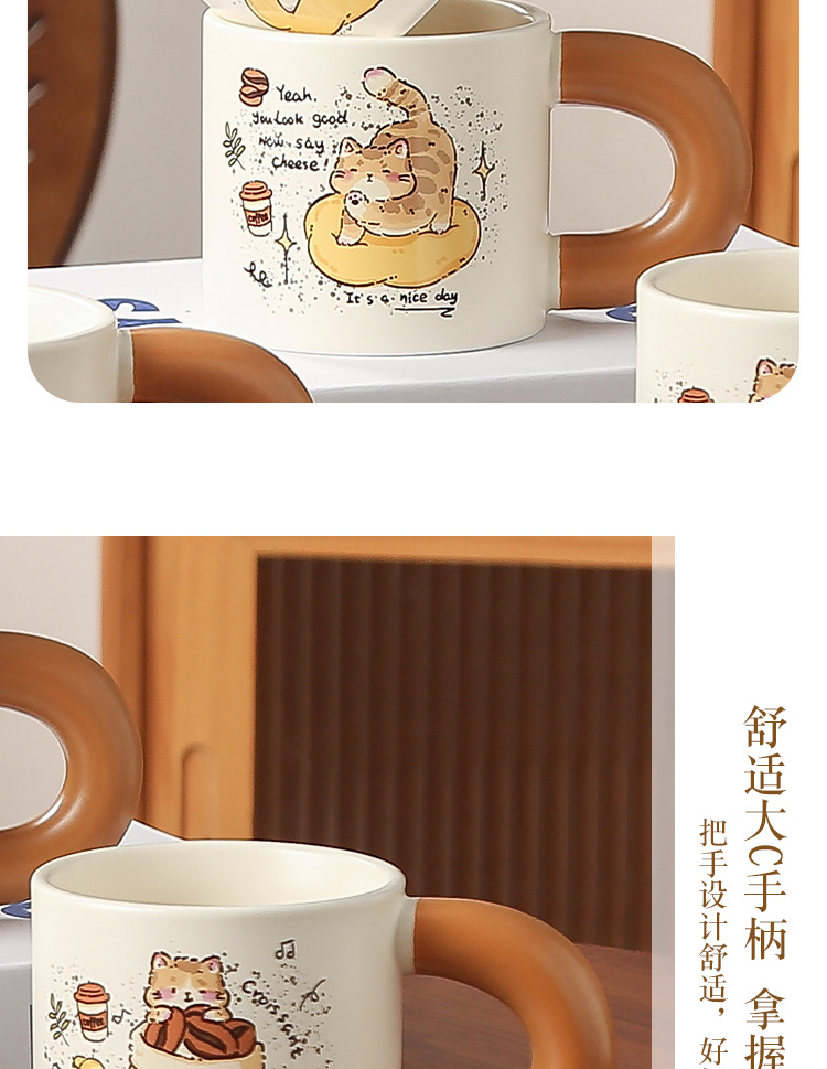 卡通创意咖啡喵陶瓷喝水杯子家用胖把手马克杯送女生礼盒套装