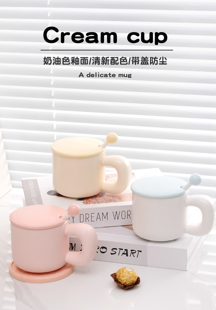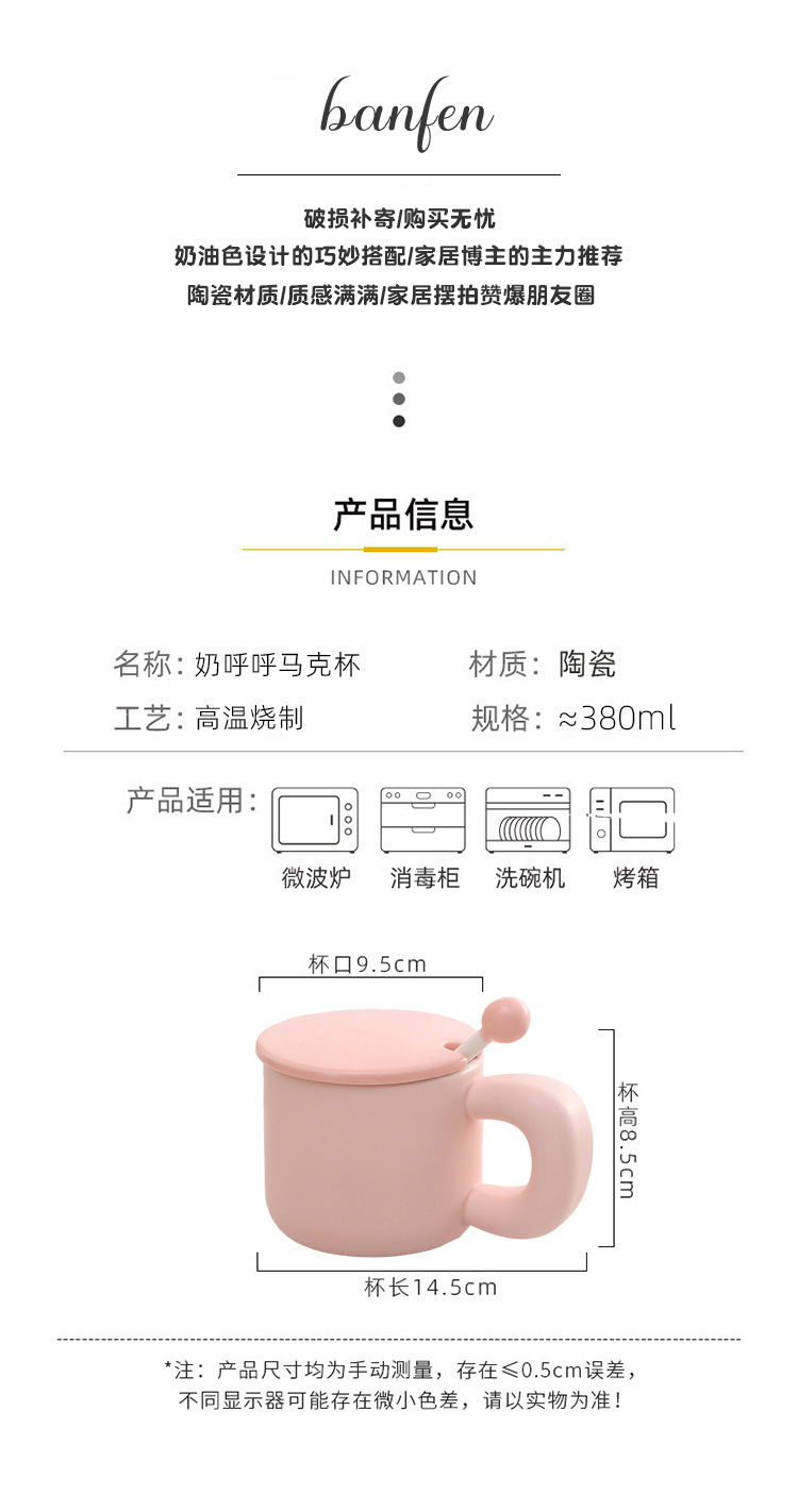 高颜值奶fufu可爱陶瓷杯简约家用马克杯少女ins风情侣水杯咖啡杯