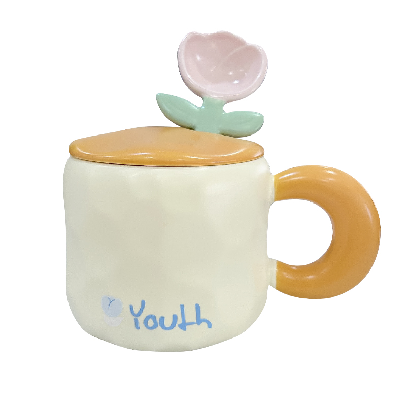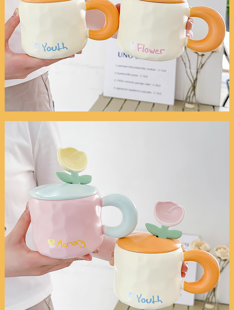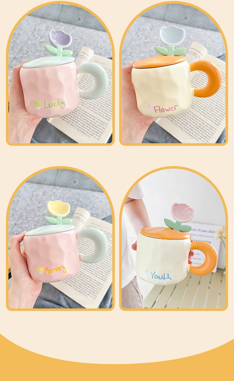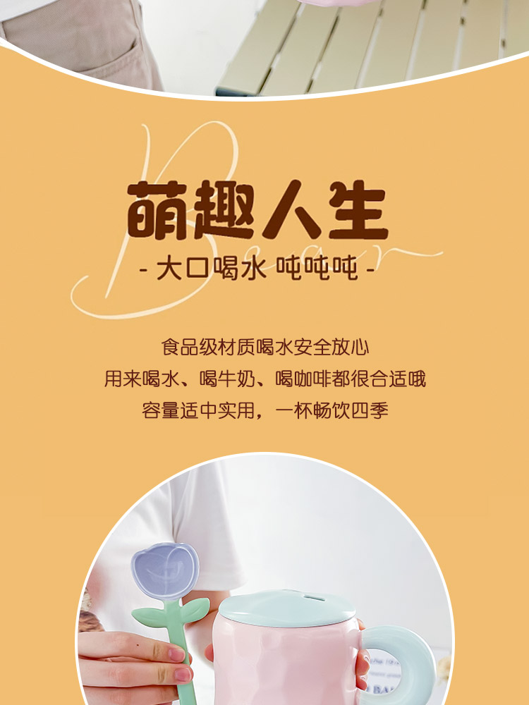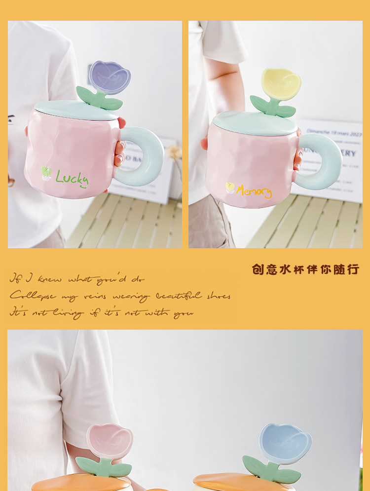 2TCU高颜值马克杯奶fufu带盖可爱太阳花勺子女生办公室陶瓷咖啡杯