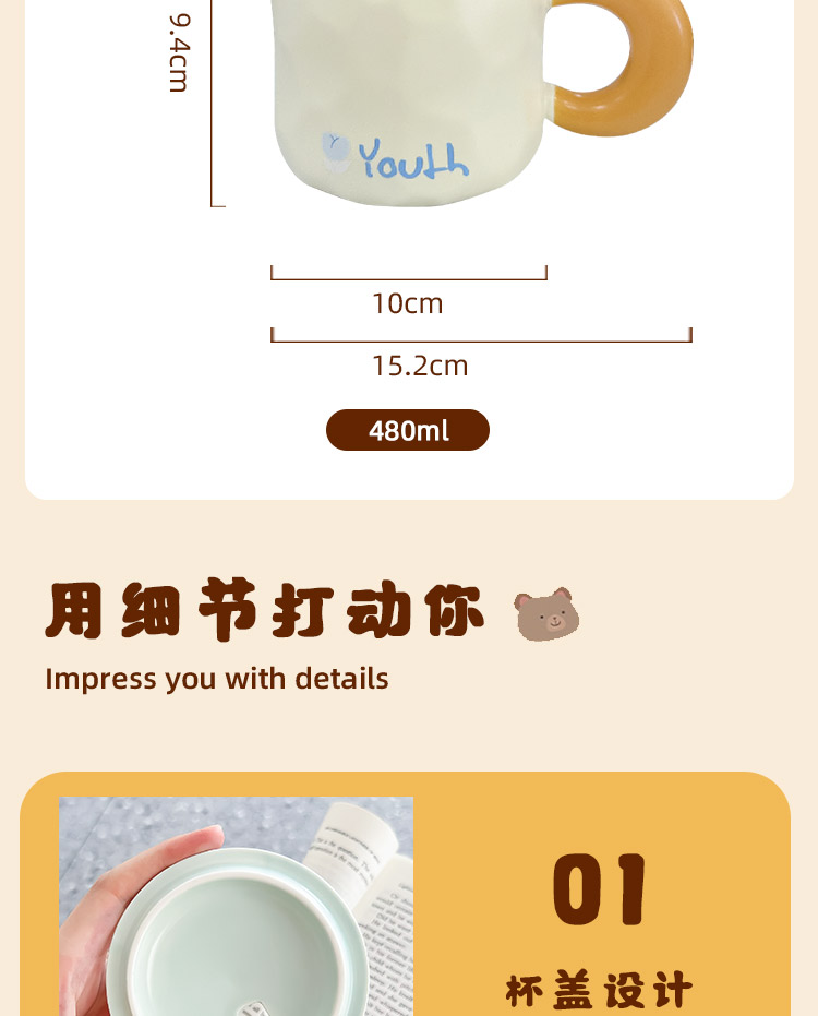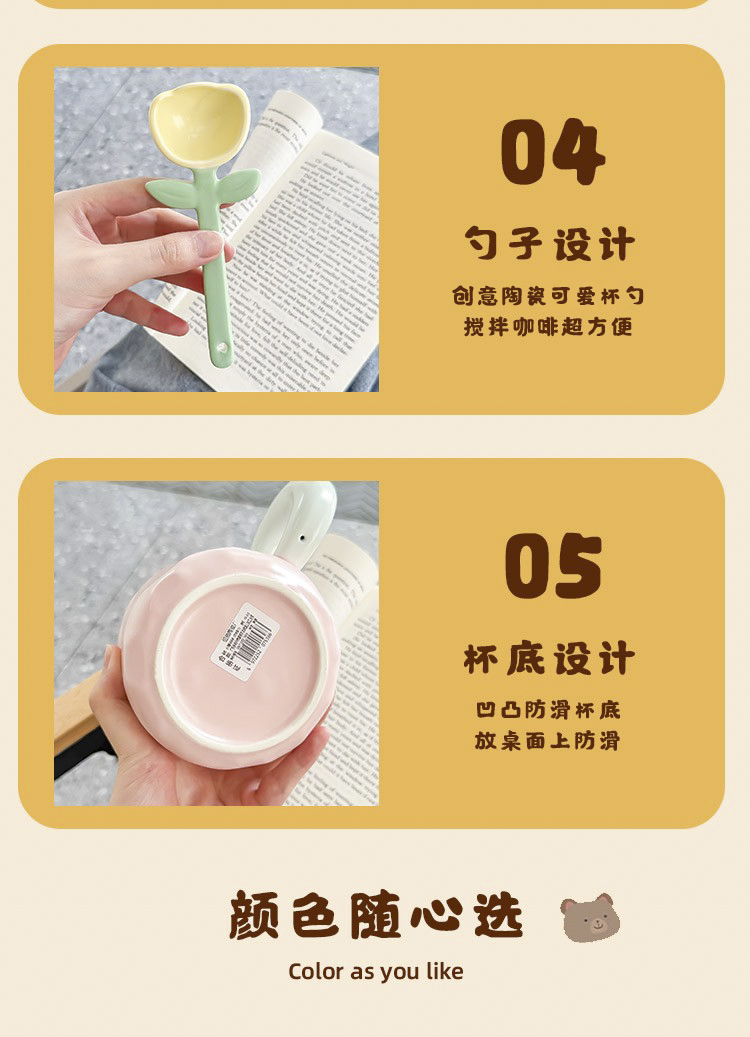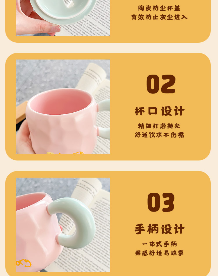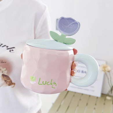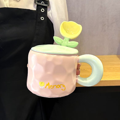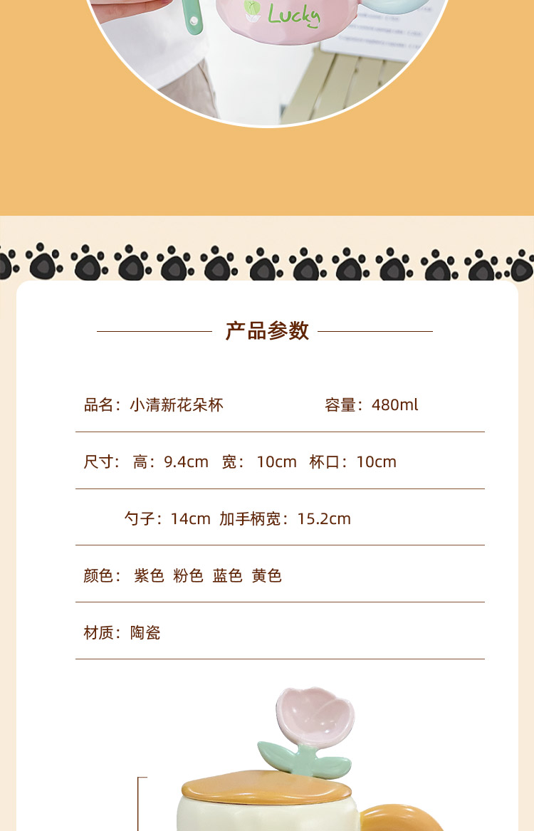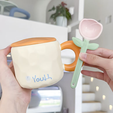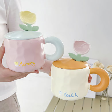 2TCU高颜值马克杯奶fufu带盖可爱太阳花勺子女生办公室陶瓷咖啡杯