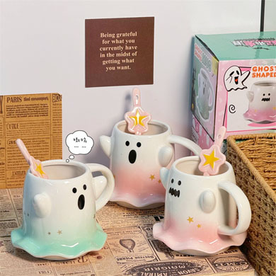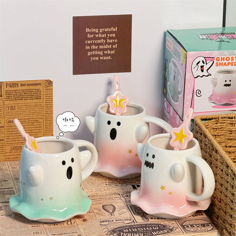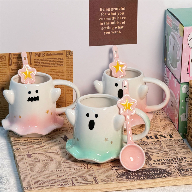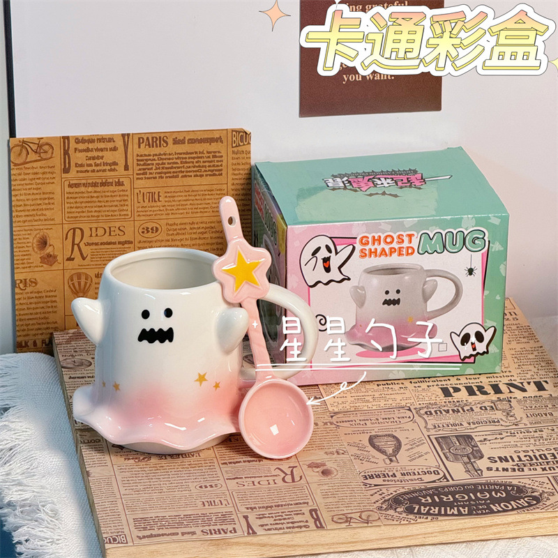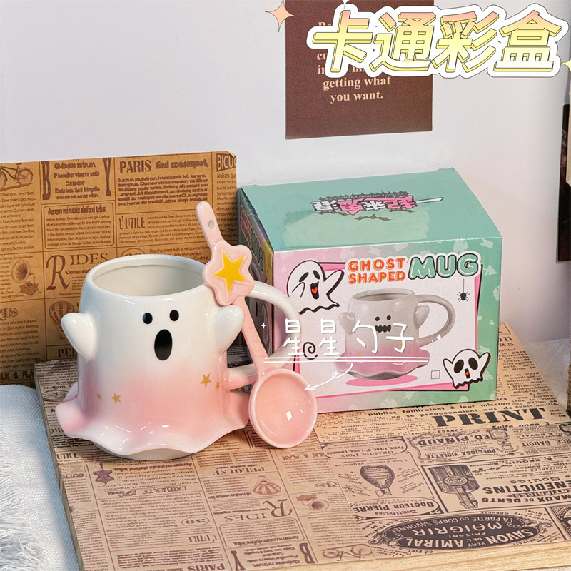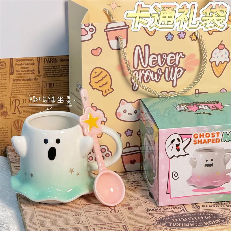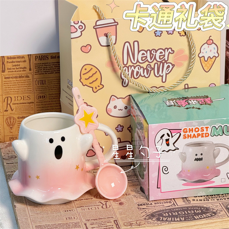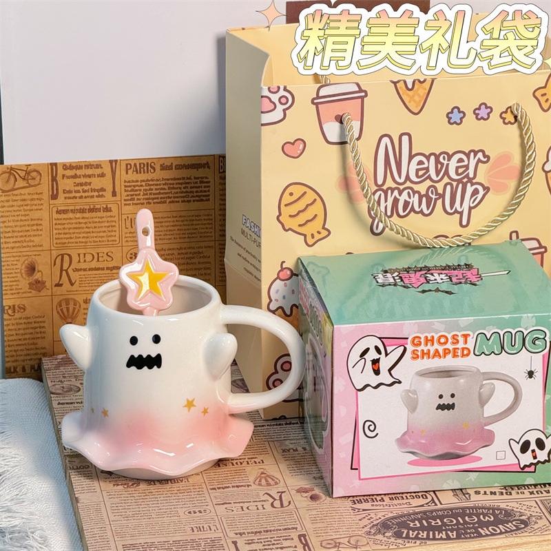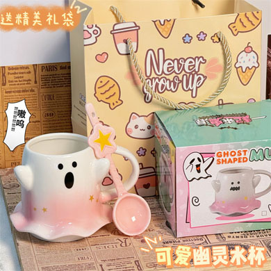可爱水杯幽灵杯子马克杯少女心陶瓷杯送节日礼物杯子伴手礼咖啡杯