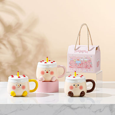 生日礼物陶瓷杯子高颜值礼盒家用马克杯带盖可爱蛋糕杯宝 宝伴手礼