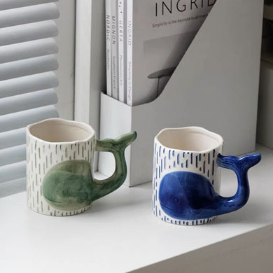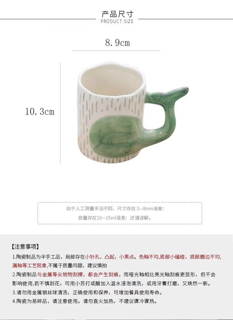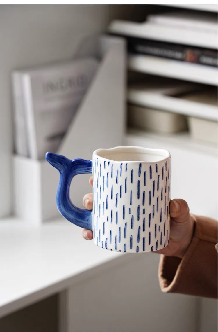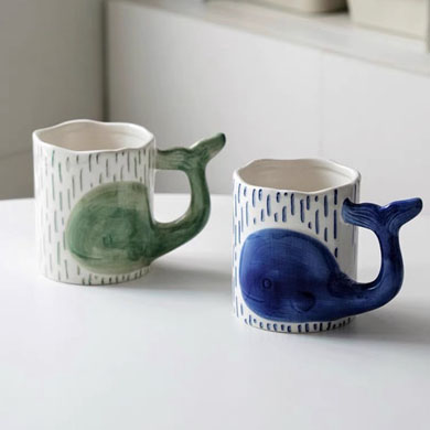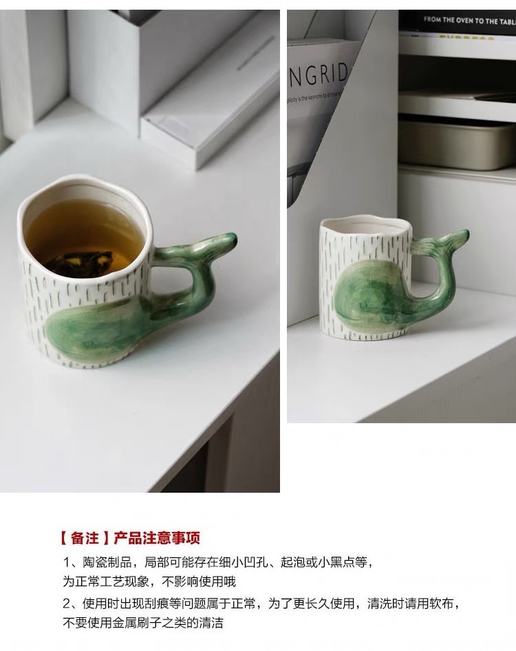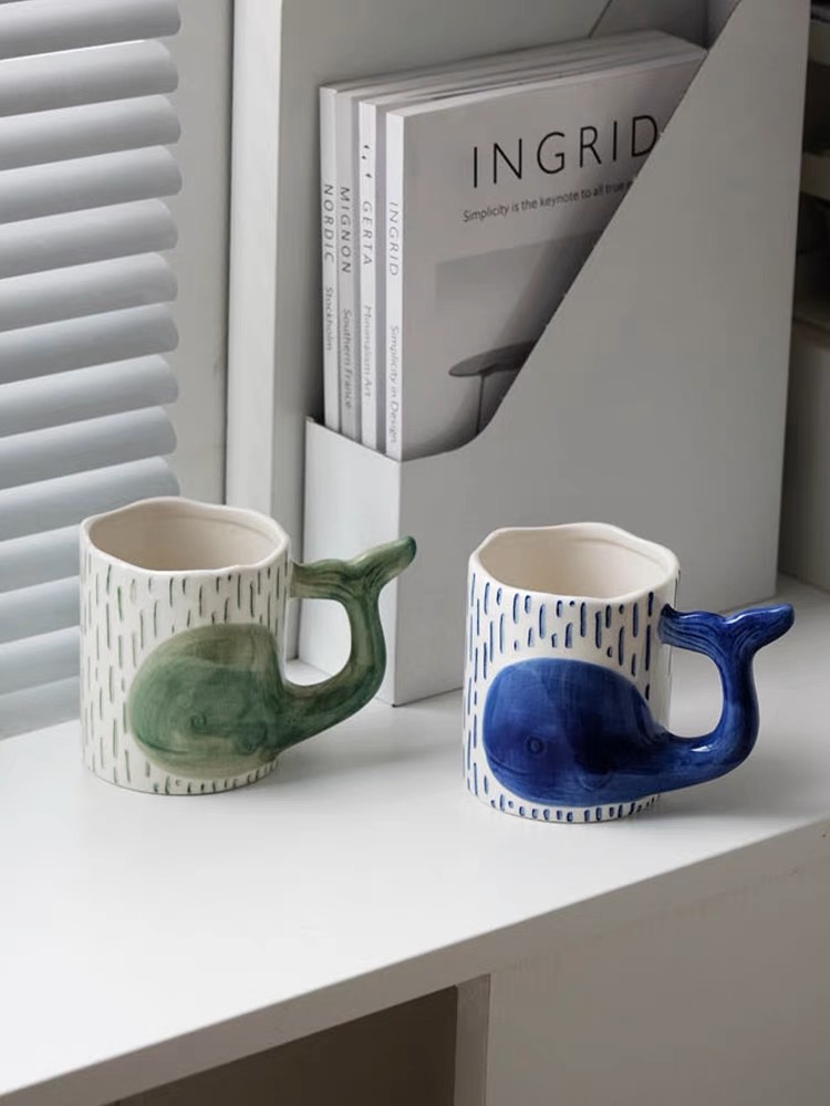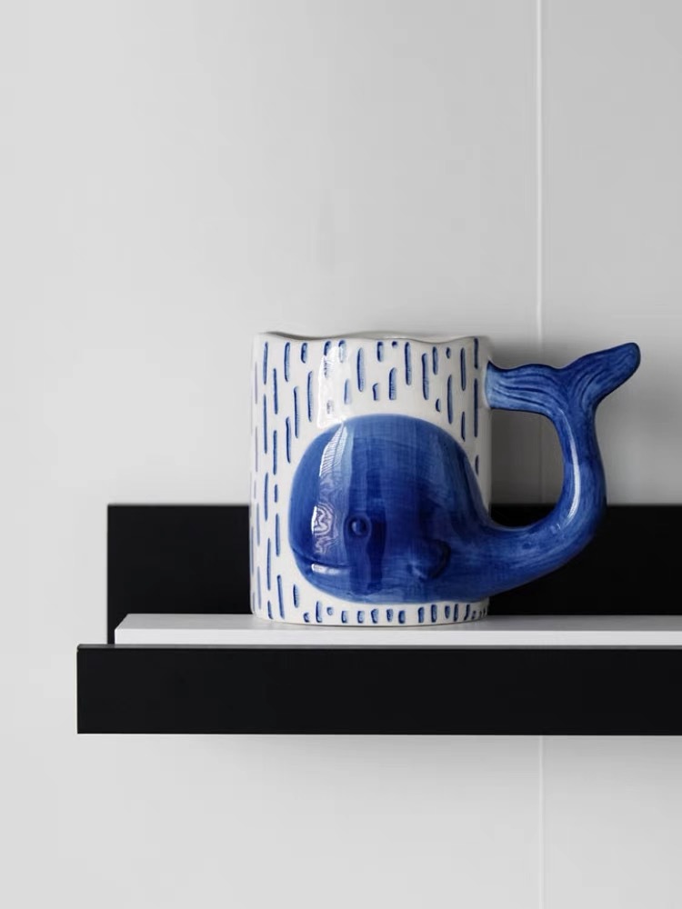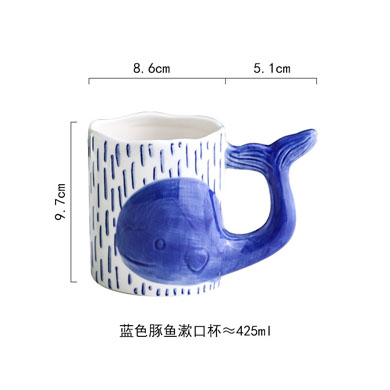可爱鲸鱼杯手绘釉下彩情侣杯个性早餐燕麦片牛奶杯创意陶瓷水杯
