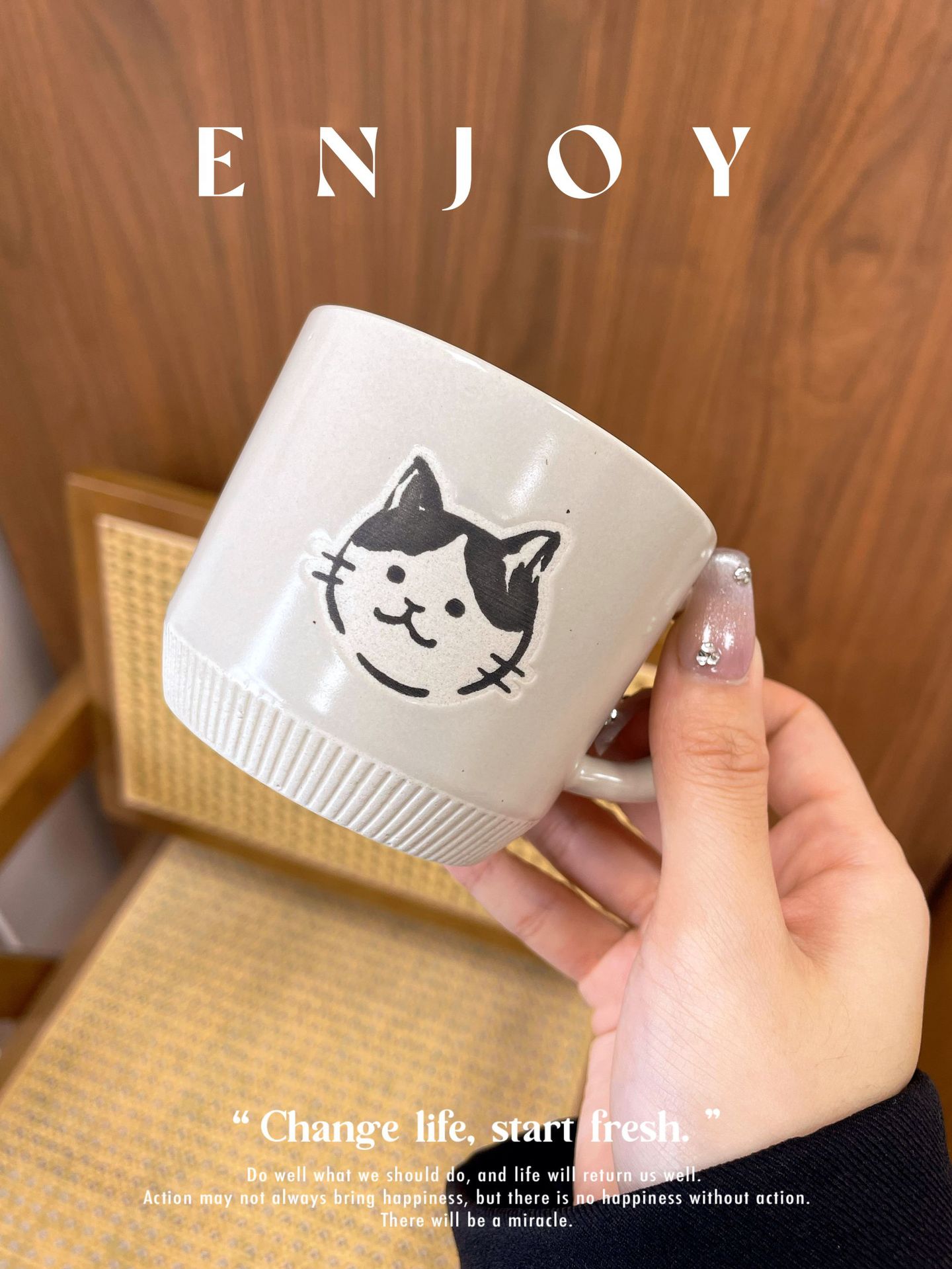 日系可爱猫咪咖啡杯陶瓷小猫马克杯猫猫造型设计感小众高颜值水杯