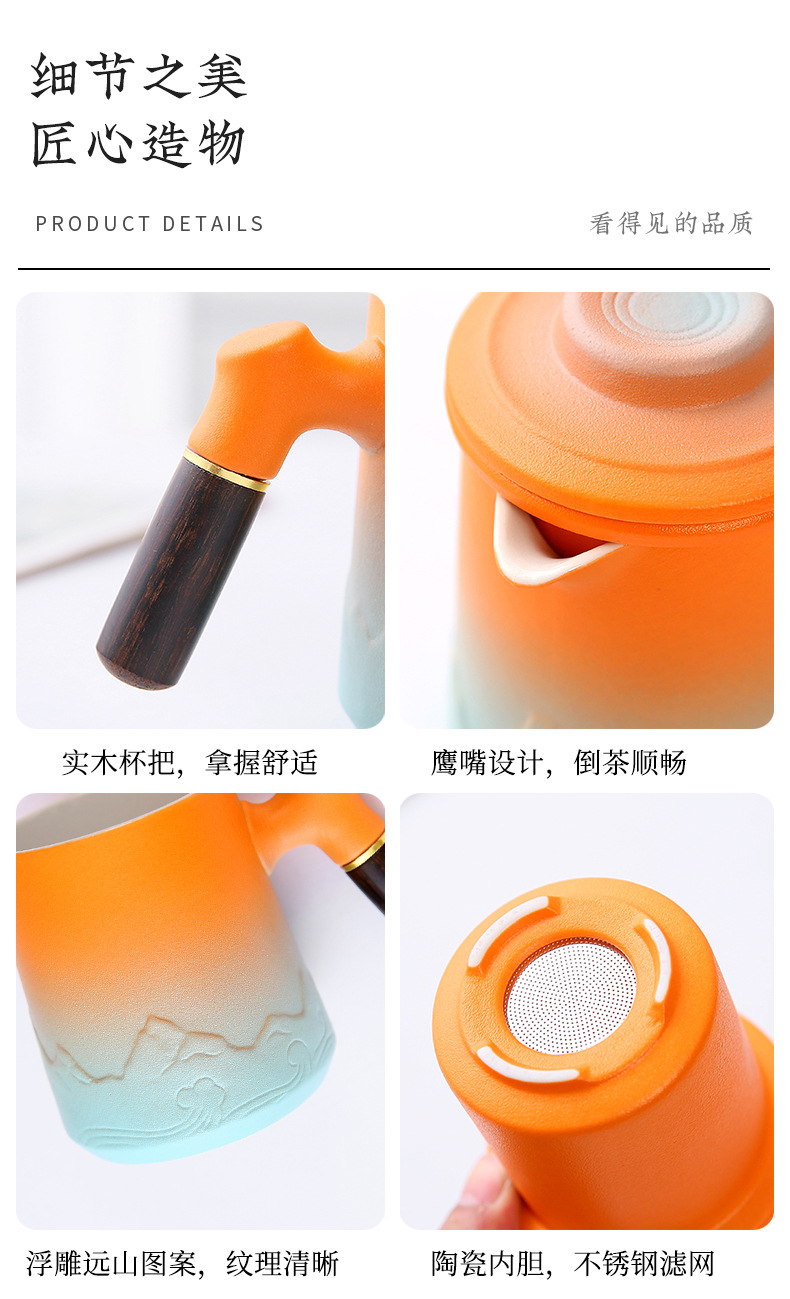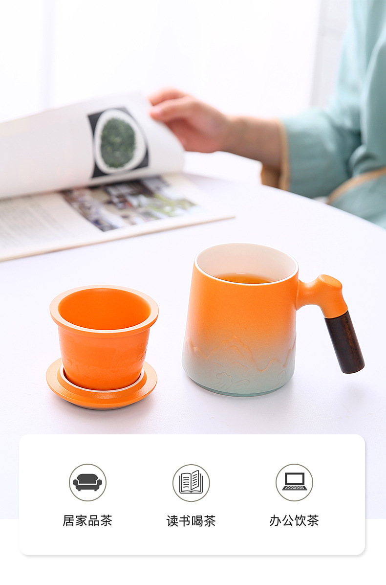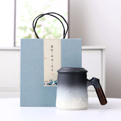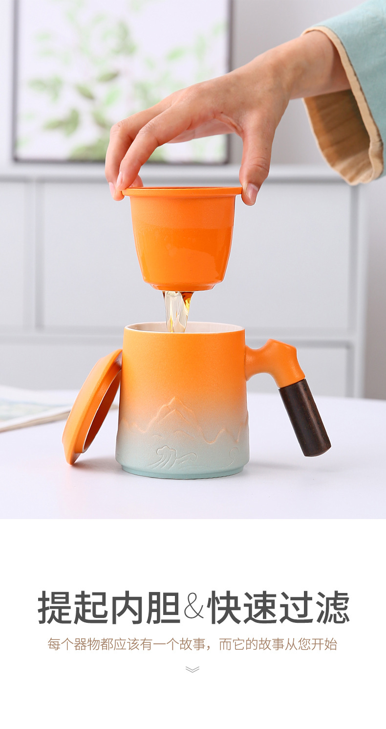 陶瓷办公茶水分离茶杯马克杯带盖过滤内胆水杯泡茶杯商务企业礼品