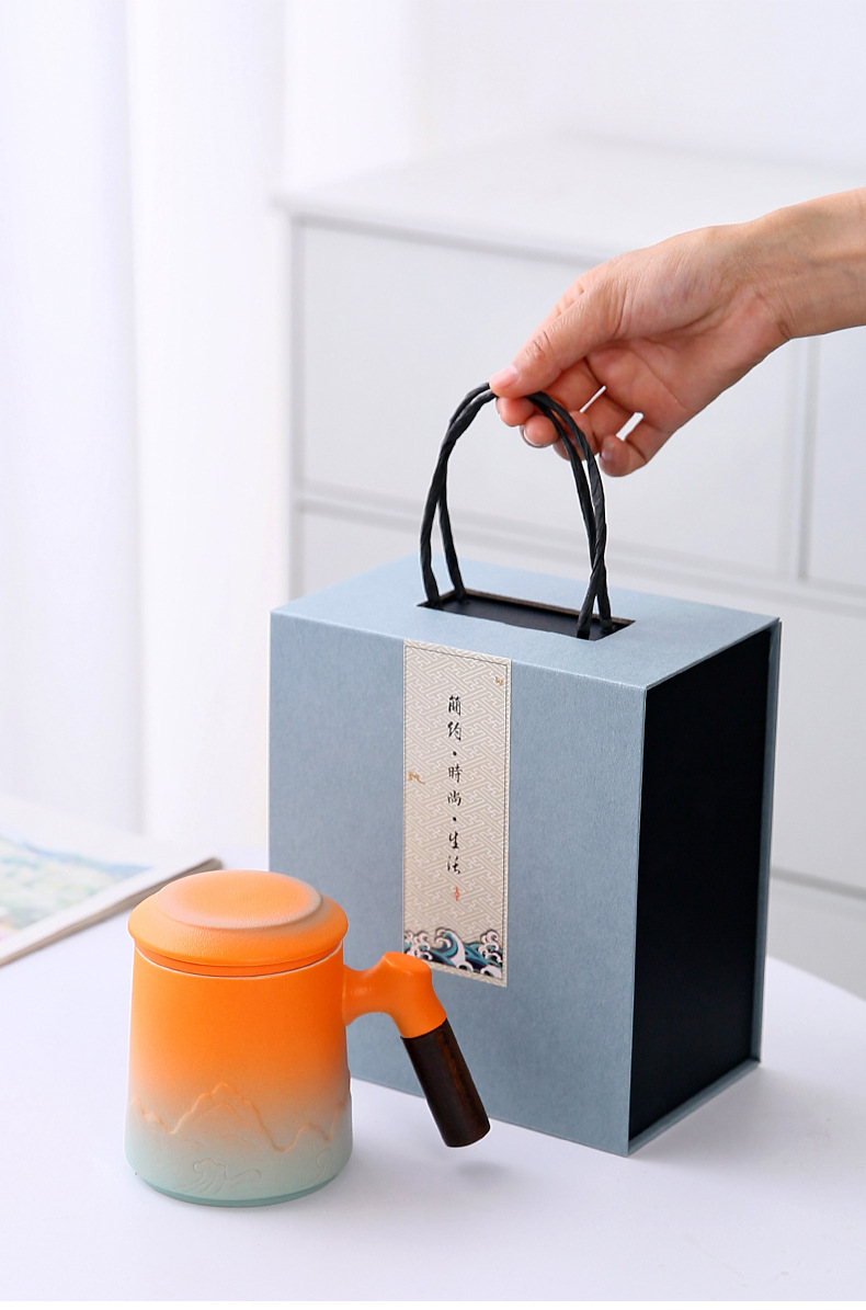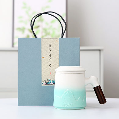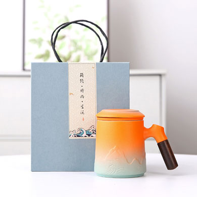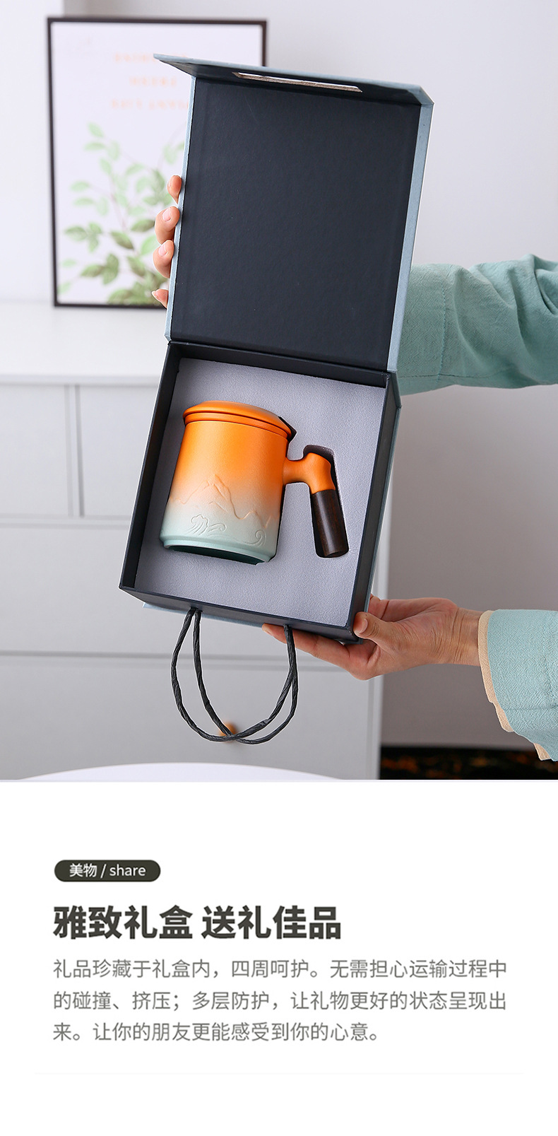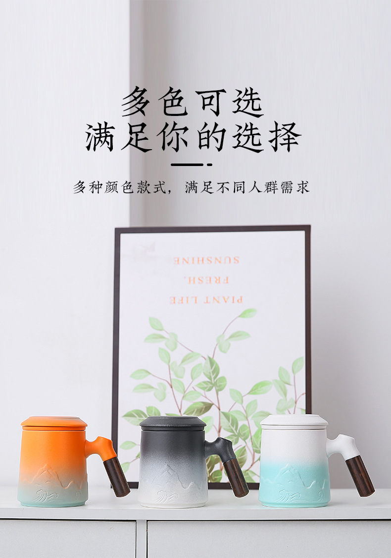 陶瓷办公茶水分离茶杯马克杯带盖过滤内胆水杯泡茶杯商务企业礼品