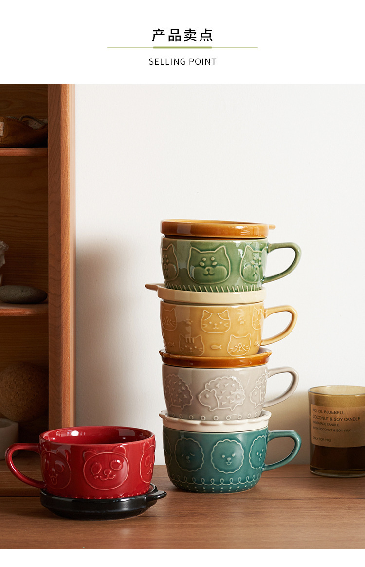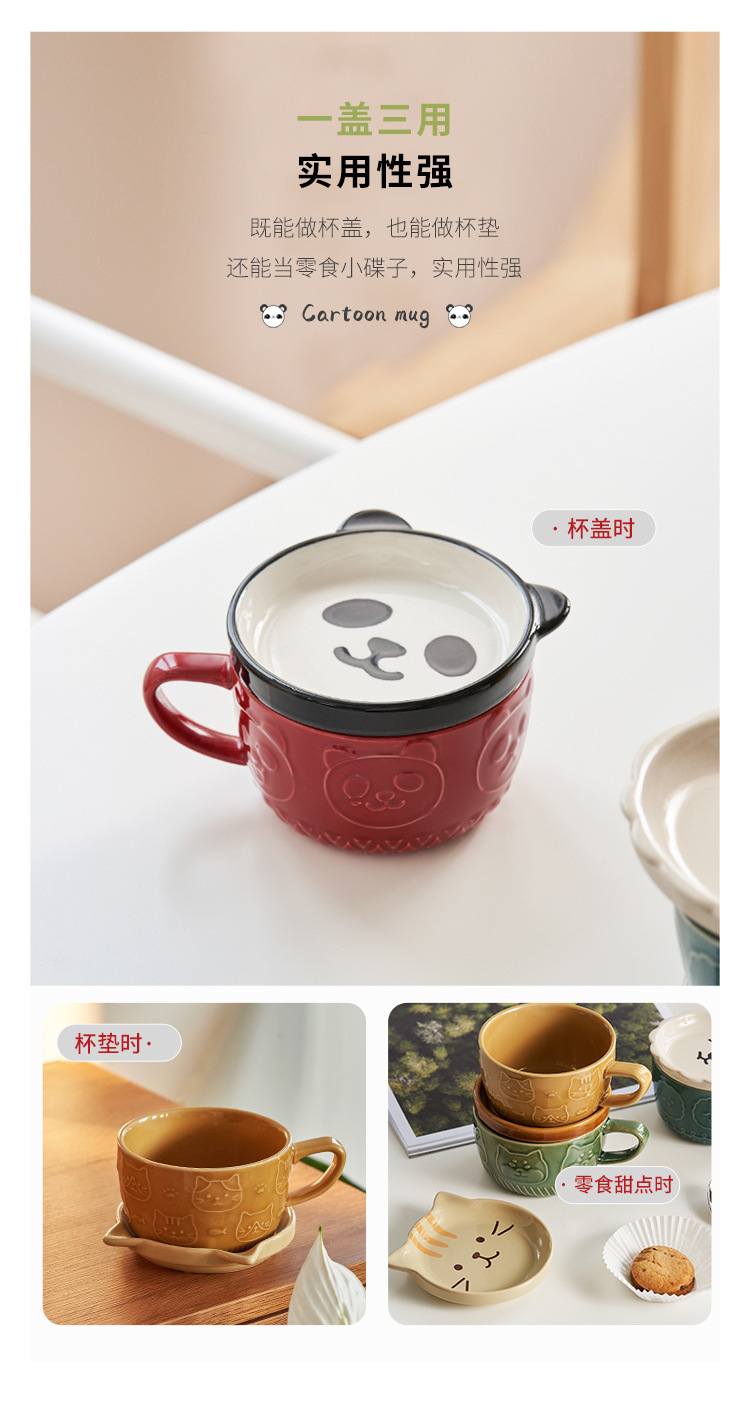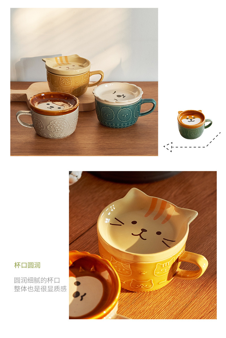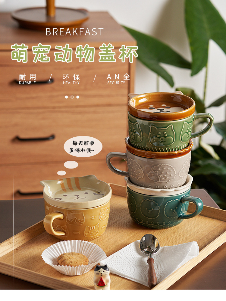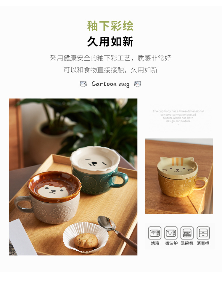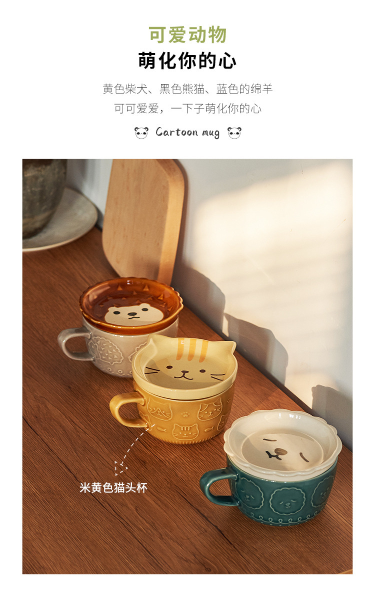 创意卡通陶瓷马克杯家用带盖喝水杯子女生情侣儿童可爱早餐牛奶杯