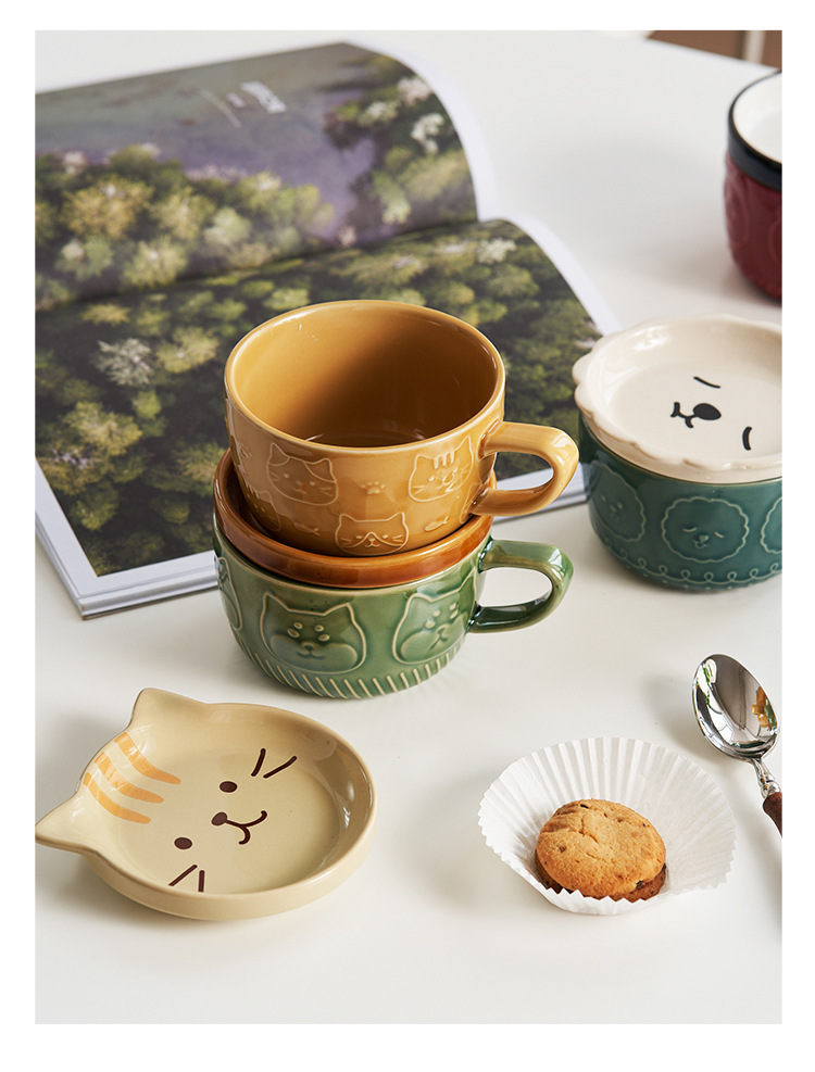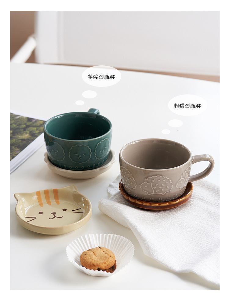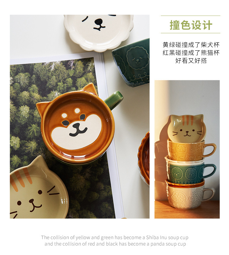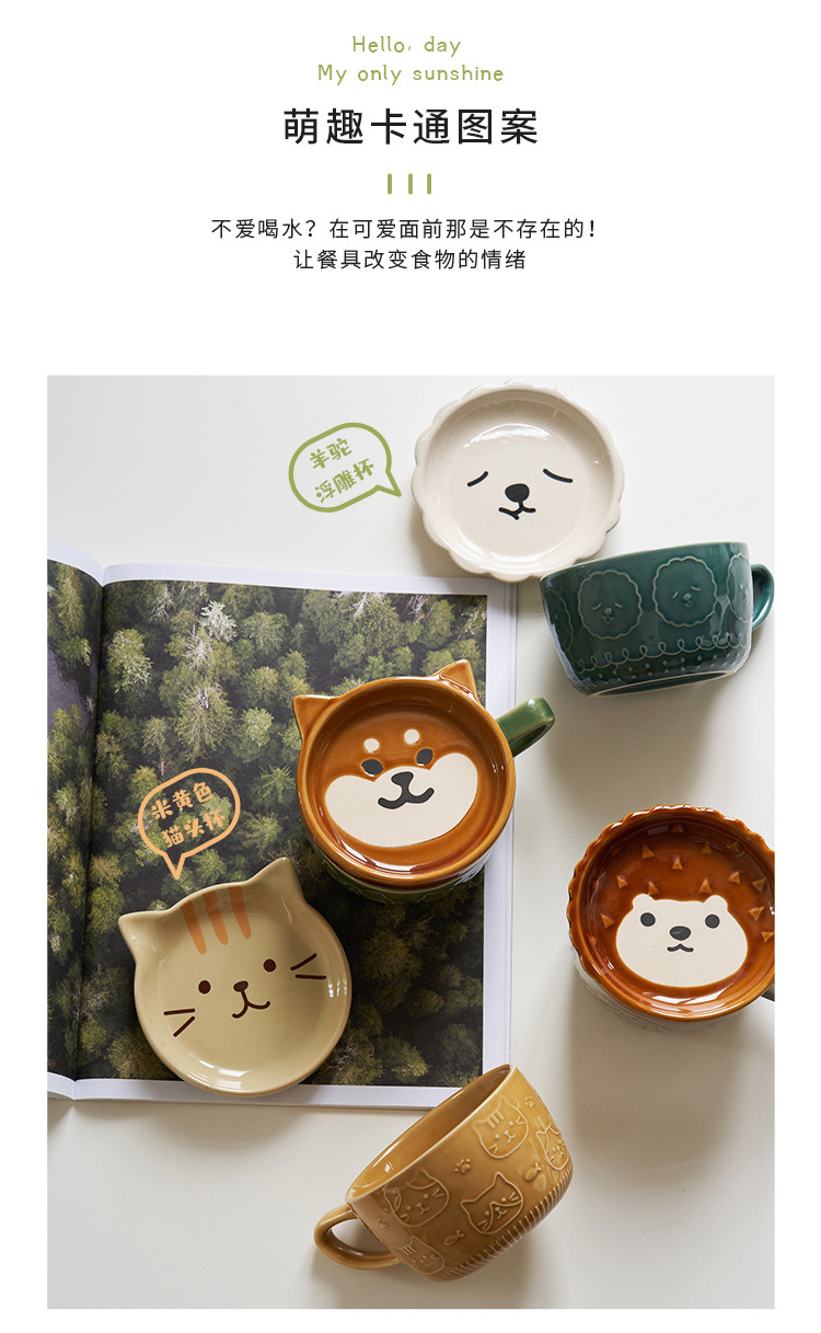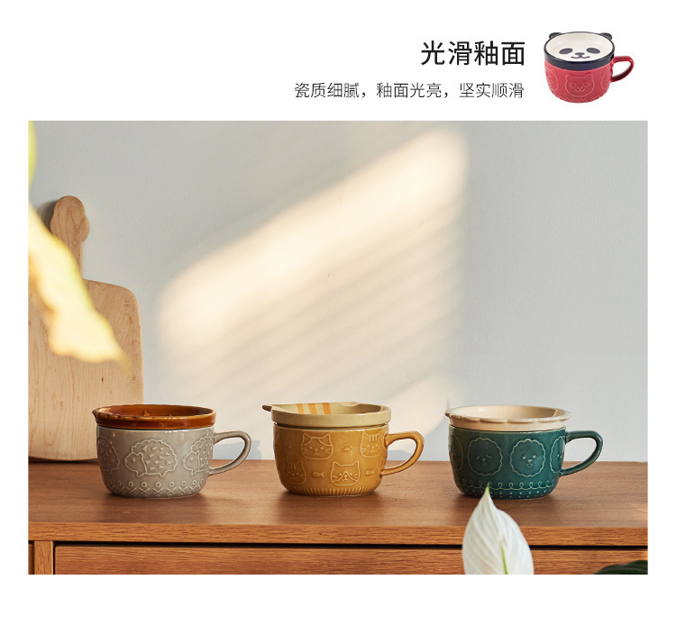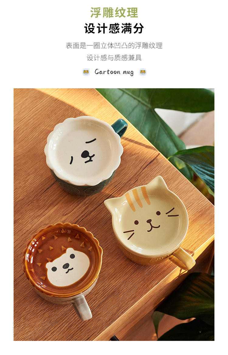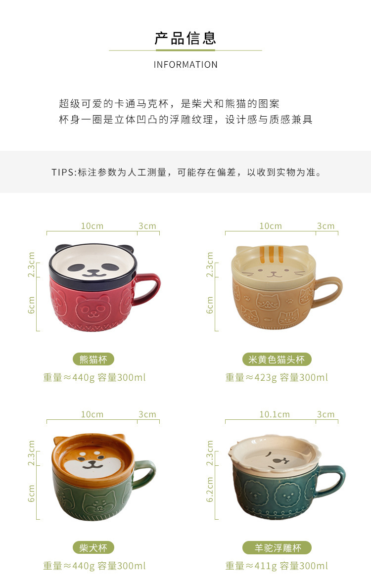 创意卡通陶瓷马克杯家用带盖喝水杯子女生情侣儿童可爱早餐牛奶杯