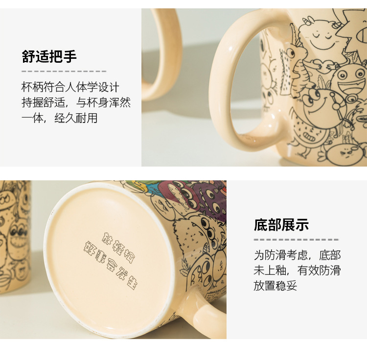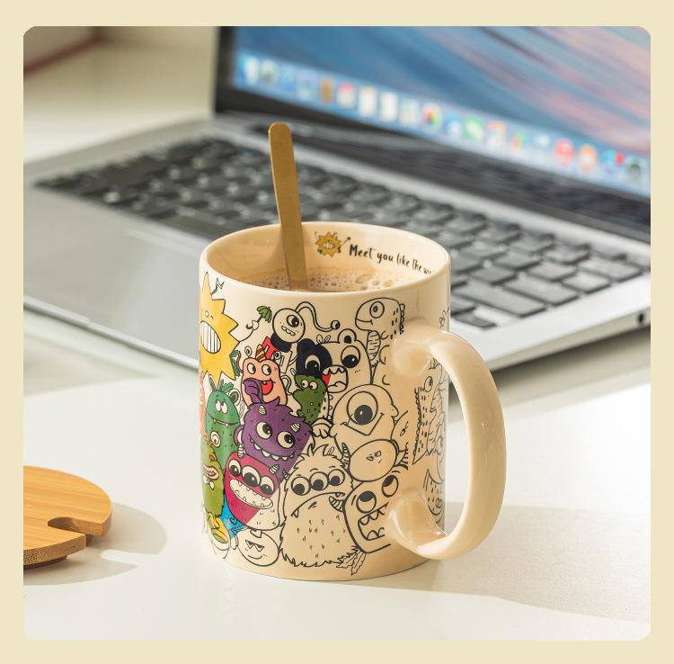 美式马克杯搞怪涂鸦陶瓷水杯带盖勺奶油风学生情侣生日礼物礼盒装