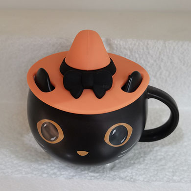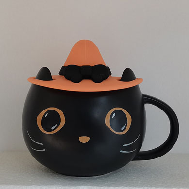 黑猫陶瓷杯万圣节神秘哑光带手柄带盖马克杯咖啡水杯