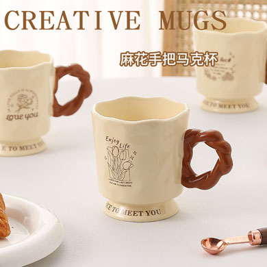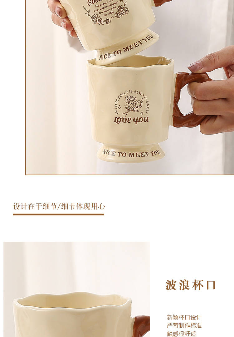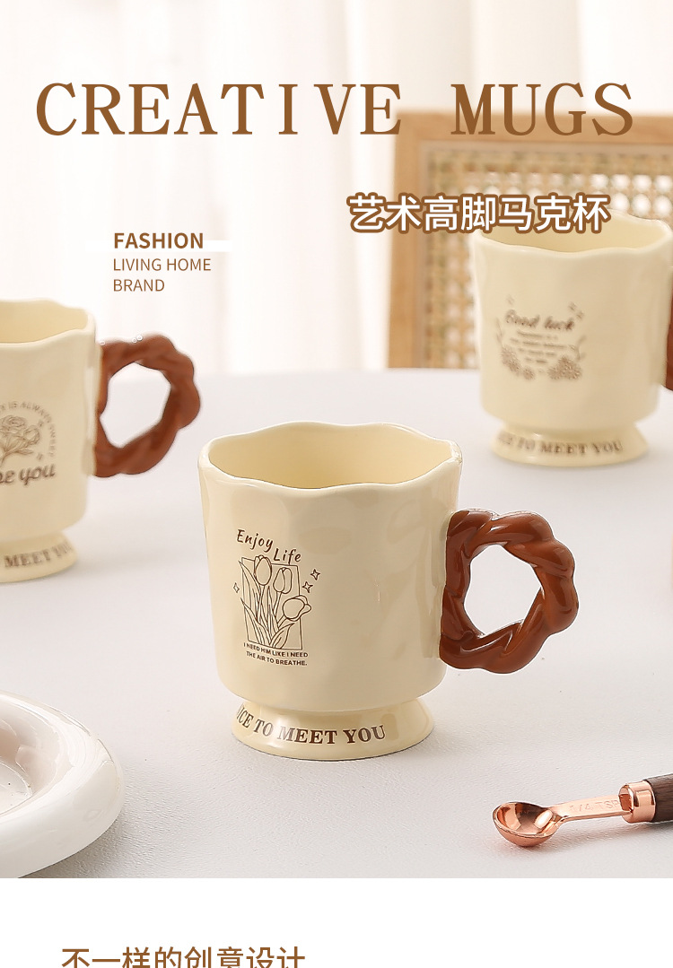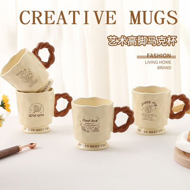法式高脚杯奶fufu马克杯小众设计高级感陶瓷杯少女高颜值马克杯