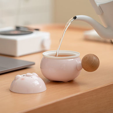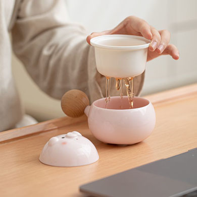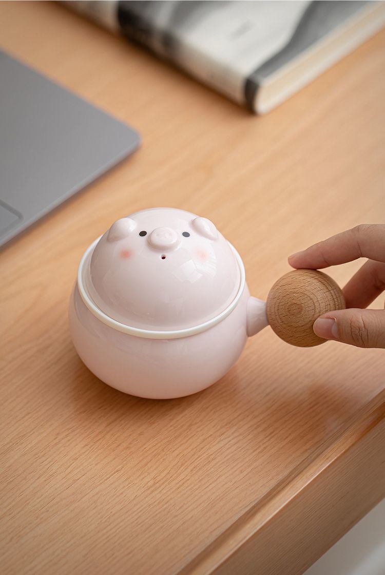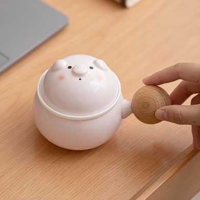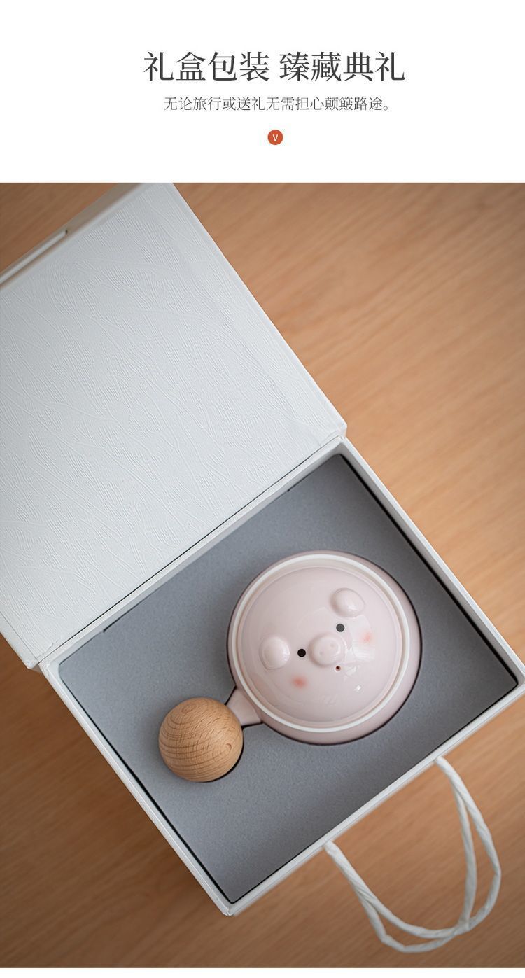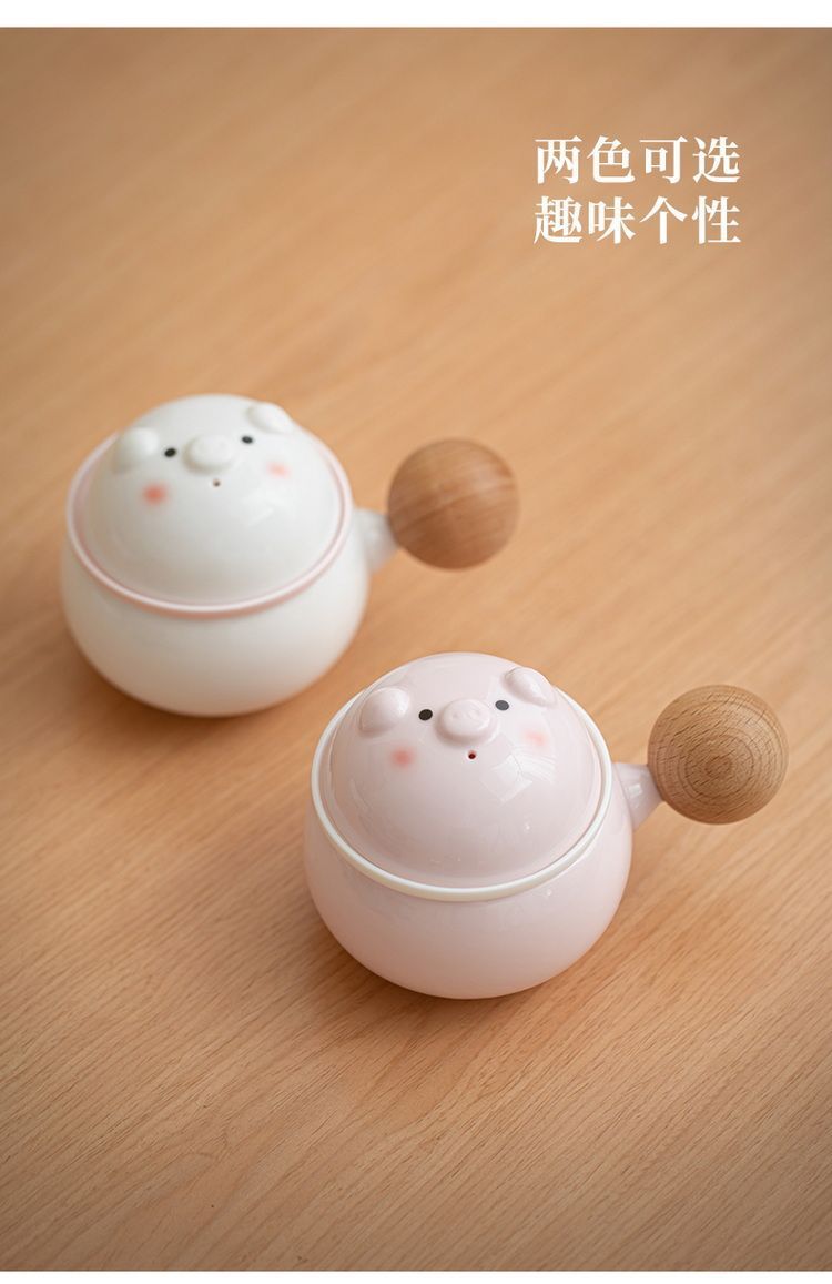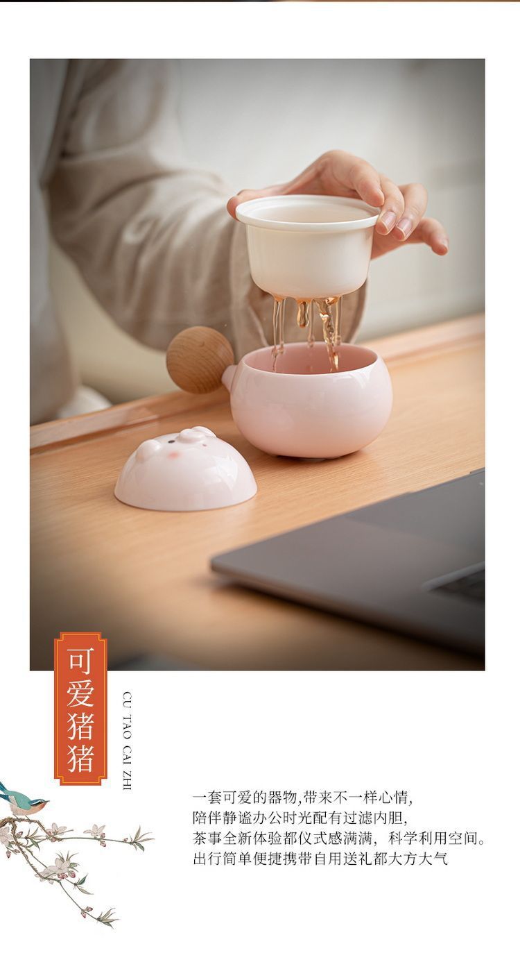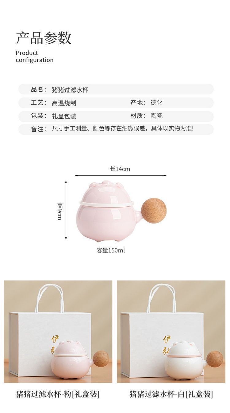 可爱猪猪过滤水杯创意女士办公室陶瓷茶水分离带盖泡茶杯子礼盒装