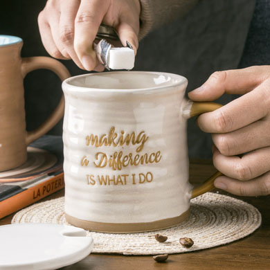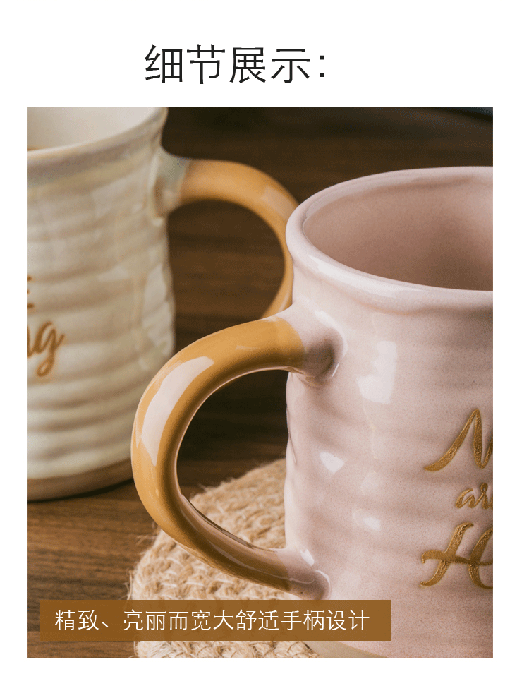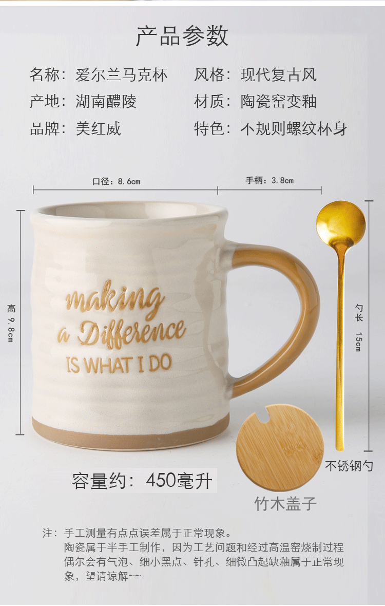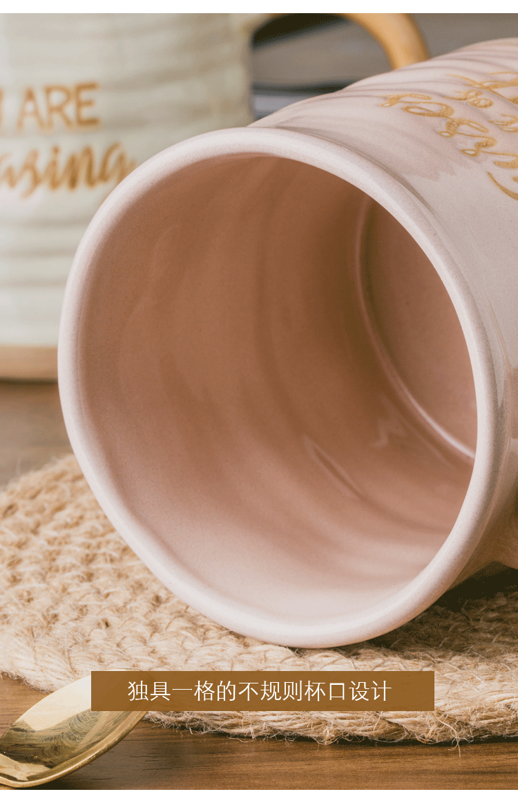 不规则复古咖啡专用杯子带盖勺高级感轻奢马克杯大容量陶瓷茶水杯