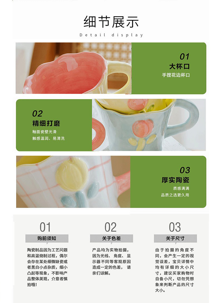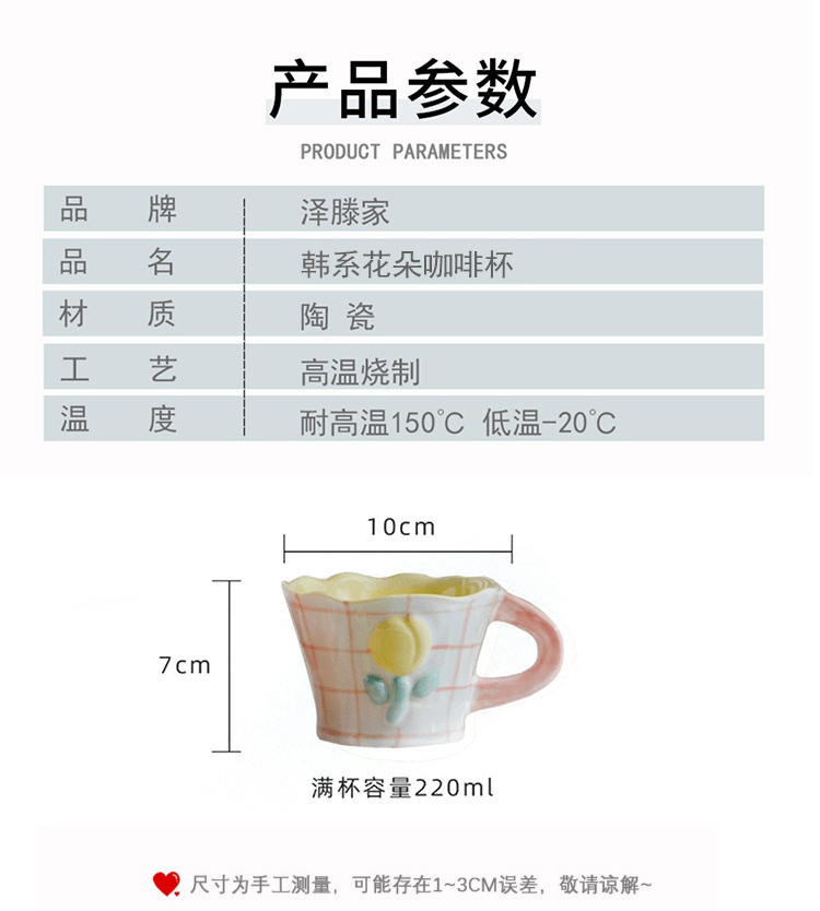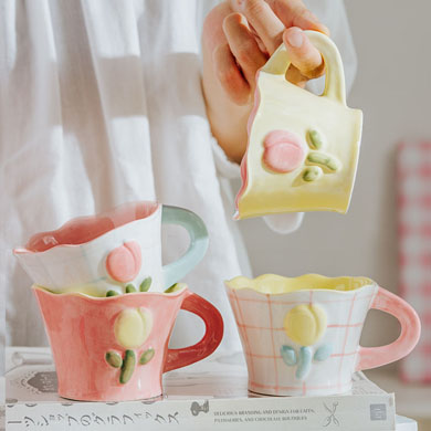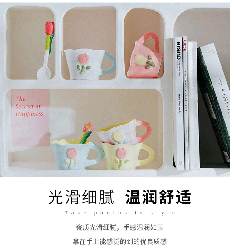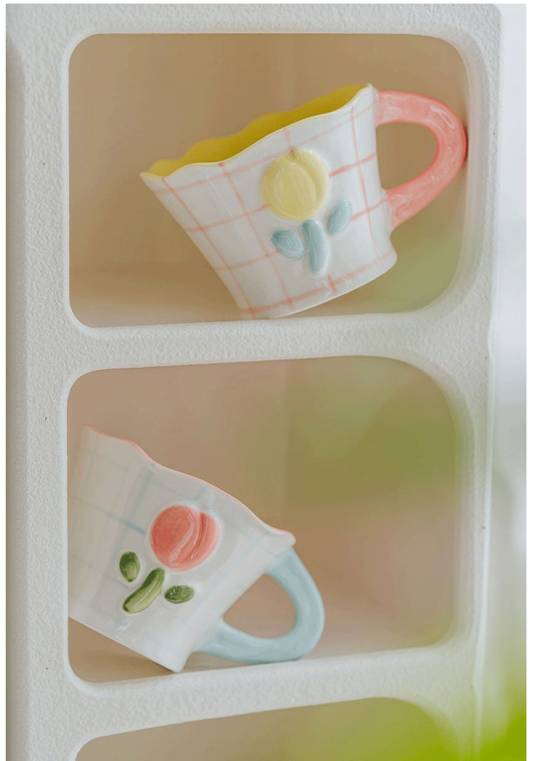 50N韩系少女心陶瓷马克杯手绘郁金香水杯咖啡杯可爱花水杯