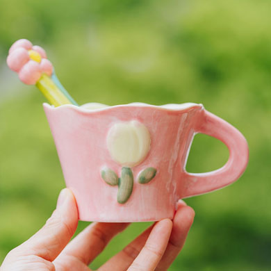 韩式花朵杯-布格粉(送勺