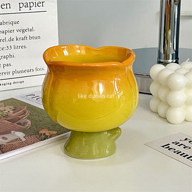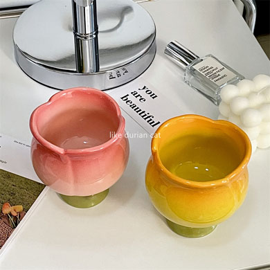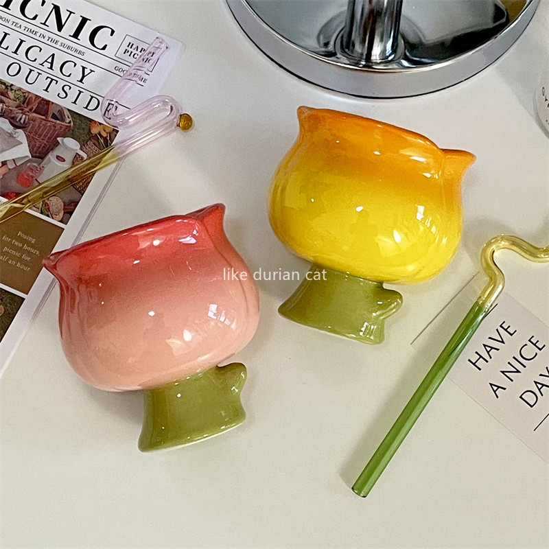 RI0T韩式小清新手捏郁金香可爱陶瓷马克杯冰淇淋甜品麦片碗ins风