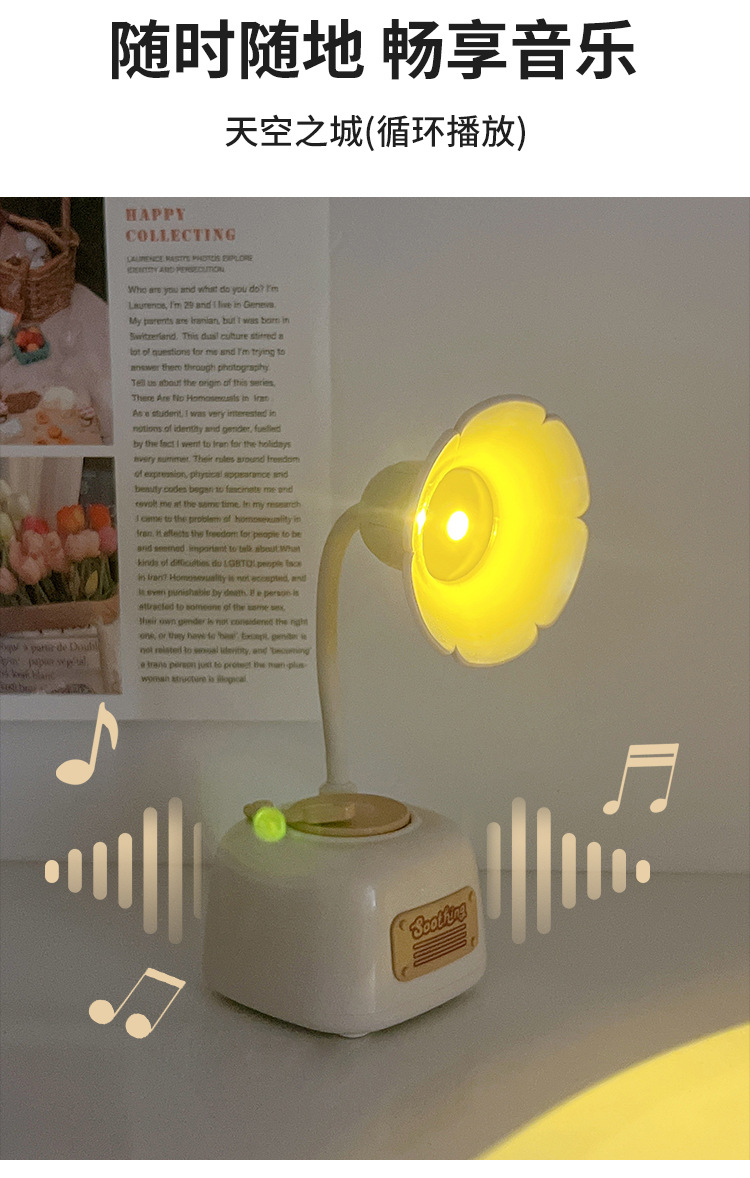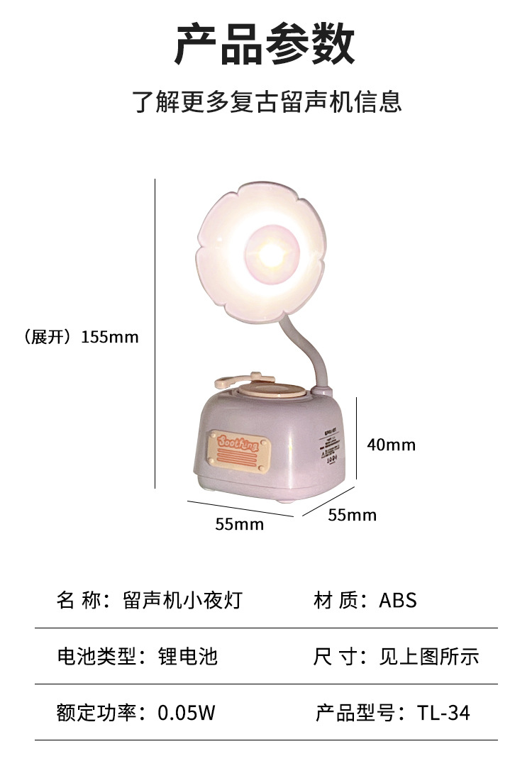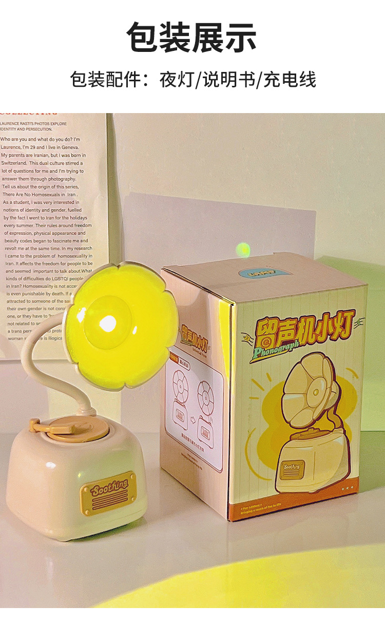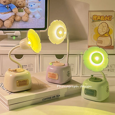 留声机迷你台灯ins桌面创意装饰摆件学生宿舍卧室床头睡眠夜灯