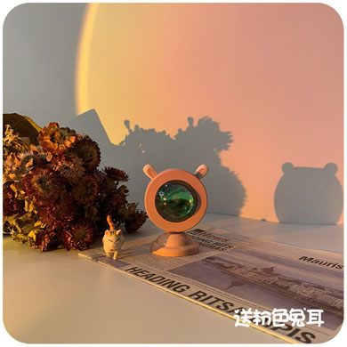 落日摆件夜灯迷你落地台灯猫耳兔耳朵日落夕阳灯日不落氛围投影灯