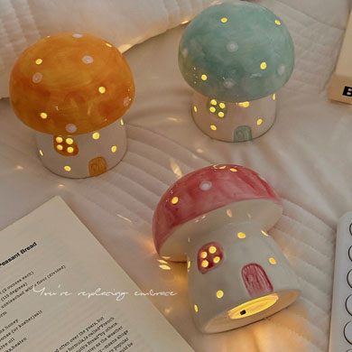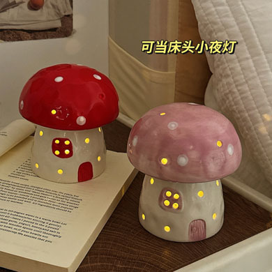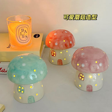 蘑菇小夜灯生日礼物女陶瓷氛围床头灯可爱儿童卧室睡眠灯桌面摆件